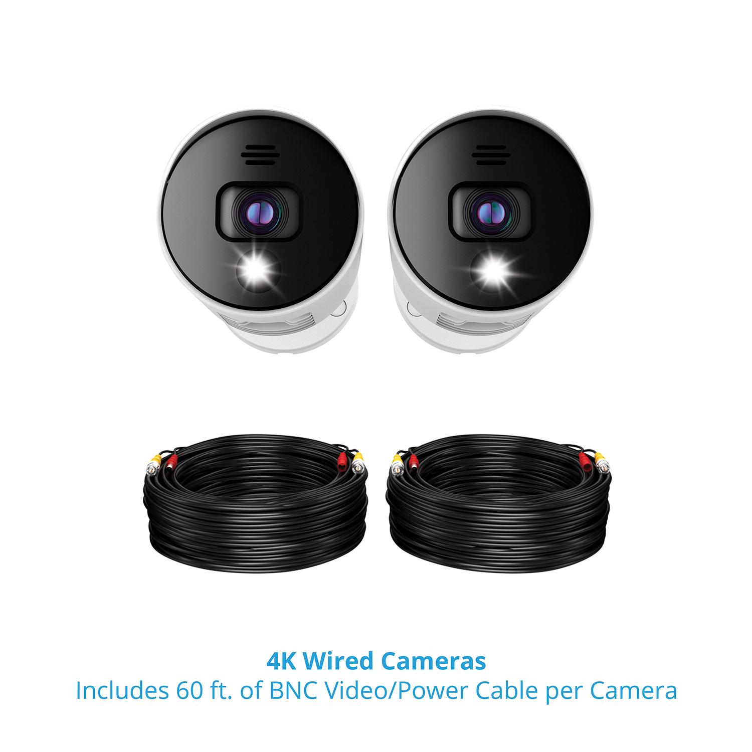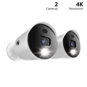 Night Owl Wired 4K Ultra HD Spotlight Surveillance Bullet Cameras, Audio Enabled, Indoor Outdoor, Night Vision, White, 2-Pack, Add to a Compatible Night Owl Recorder