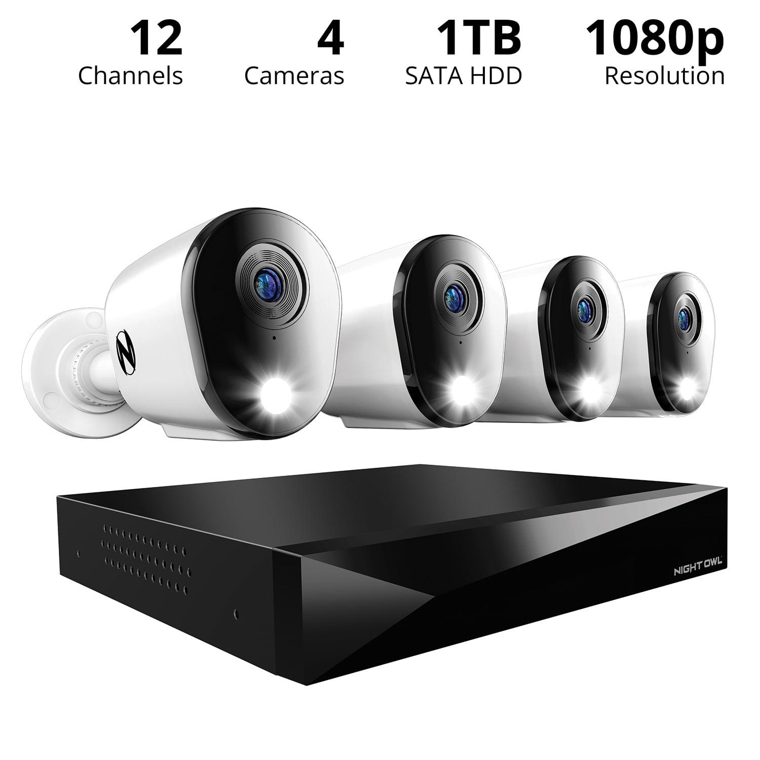 Night OwlA 2-Way Audio 12 Channel DVR Security System with 1TB Hard Drive and 4 Wired 1080p Deterrence Cameras