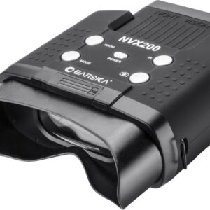 Clearly see up to 2x magnification in complete darkness with the new BARSKA NVX200 Night Vision Binoculars. The dual infrared illuminator allows viewing in complete darkness up to 328ft/100m, and is ideal for a wide variety of nighttime uses such as surveillance and general nighttime observation. The NVX200 also allows the user to capture both images and video for later viewing on a TV or computer. With a rugged water resistant housing, the Barska NVX200 Night Vision Binoculars can endure the elements while providing impressive nighttime viewing quality. Features: 2x Magnification with 2x Digital Zoom Day or Night Viewing 3W Infrared Illuminator Allows Viewing in the Dark up to 328ft/100m Wide Angle of Viewing Records Images and Video Adjustable Center Focus Durable Weather and Water Resistant Housing Built-In Tripod Mount Transfer Image and Video Files to a Computer Rubberized Matte Black Finish Includes Neck Strap