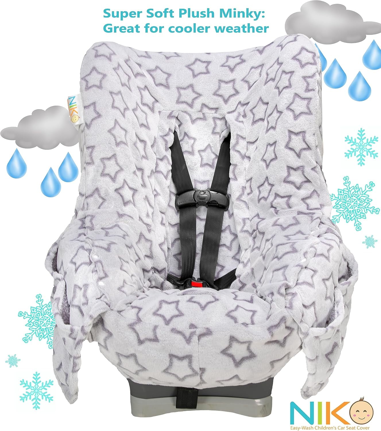 Niko Easy Wash Children’s Unisex Car Seat Cover & Liner – Winter, Cool Weather Gray Star Minky – Waterproof SEAT Bottom