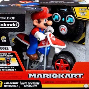 Nintendo launched its first console in North America in 1985, and the rest is video game history. Nintendo has sold more than 4.7 billion video games globally, including the popular Super Mario Bros. franchise. Mario has since gone on to star in many more gaming adventures, allowing him to evolve into the beloved pop-culture icon he is today. Along with his friends Luigi, Peach, Yoshi, and Toad, this classic video game hero has an enduring appeal for fans of all ages! Nintendo is proud to bring you the new Mario Kart Anti-Gravity R/C Motorcycle. Have Mario race in standard mode or flip into anti-gravity mode to perform drifts or tricks. With added performance you can do awesome 360 spins! With up to a 100′ range this RC can go the distance! Race in standard mode or flip into anti-gravity mode Perform drifts and tricks at the press of a button.