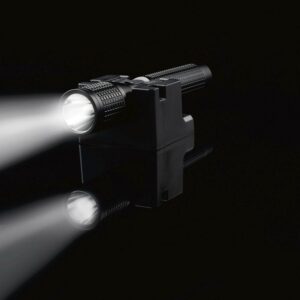 – A tactical mid-body switch activates momentary and constant high, low, strobe, and variable dim modes
