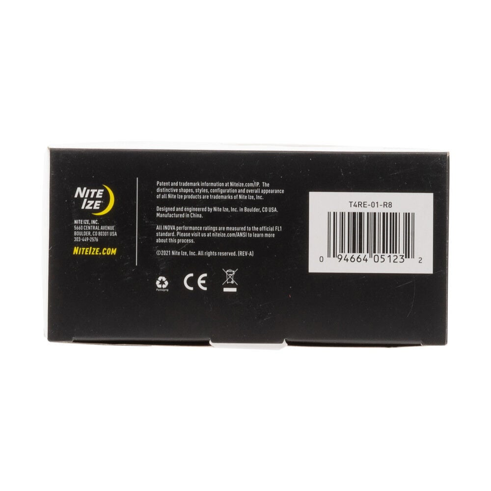 Solve an everyday problem like having a reliable and powerful light source with the Nite Ize INOVA T4R Powerswitch Rechargeable Tactical Flashlight. This tactical flashlight is a must-have for law enforcement and first responders. This flashlight is designed to be your reliable companion for all your outdoor adventures. Whether you’re in an emergency or setting up a campsite, this flashlight is what you need to illuminate your surroundings. This flashlight delivers a maximum brightness of a whopping 1300 lumens. The flashlight’s beam stretches to an impressive distance of 853 feet, making it perfect for professional use. This tactical camping and hiking flashlight offers different modes, including blast, high, medium, low, momentary blast, and strobe. This drop-proof camping accessory is waterproof up to 1 meter and features an impact-resistant head, ensuring it can withstand the rough, outdoorsy life. With the included mountable USB charging cradle, the high-powered lithium-ion battery fully recharges in just 3 hours and will power the T4R for up to 72 hours. With the PowerSwitch technology, you can run the flashlight on its included rechargeable lithium-ion battery or two non-rechargeable CR123 batteries, giving you more flexibility. Our mission at Nite Ize is to design and manufacture inventor-driven products that organize your life, protect your gear, light your way, and creatively solve your everyday problems. Nite Ize began in 1989 with one entrepreneurial spirit, an innovative product idea, a small Colorado cabin, and enough passion to lay the foundation of who we are today. CEO and Founder Rick Case continues to helm the Nite Ize ship, instilling his energy, inventor-driven creativity, and attention to detail into every aspect of our company. We pride ourselves in being fun and functional, trusted and innovative, and obsessively dedicated to making products that support your life.