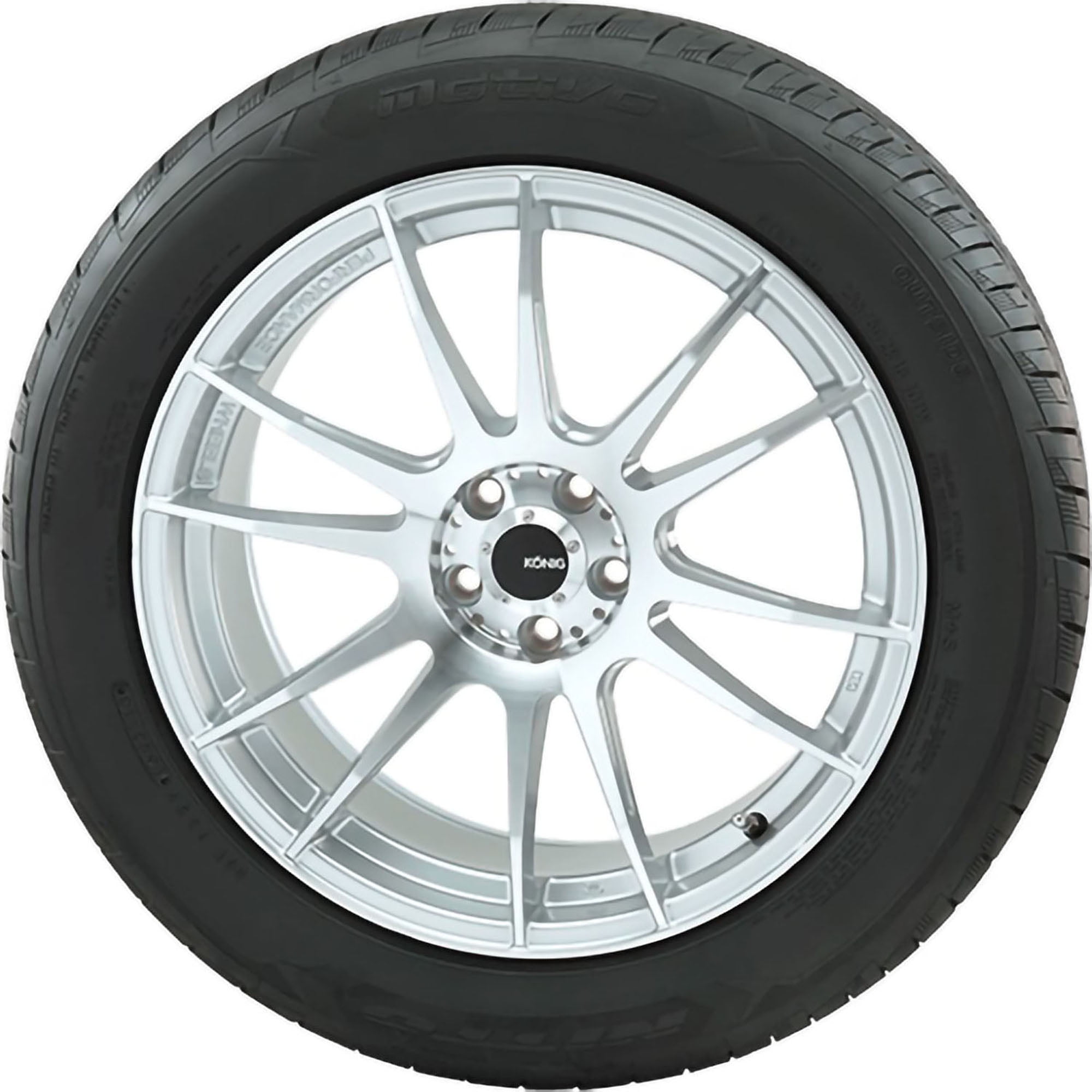 The Nitto Motivo is an all-season ultra-high-performance tire that’s made for performance-oriented sedans and coupes. While its advanced siping technology helps generate superior traction in wet conditions, the Motivo’s large blocks on the outer part of the tread are responsible for grip on dry surfaces. Backed by a 60,000 mile limited manufacturer tread life for W- and Y-speed rated sizes, the Motivo features alignment indicators within the tread that visually show how the tire is wearing. Additionally, the Motivo utilizes 3D Multi-wave sipes that interlock to boost acceleration and braking performance when driving at higher speeds.