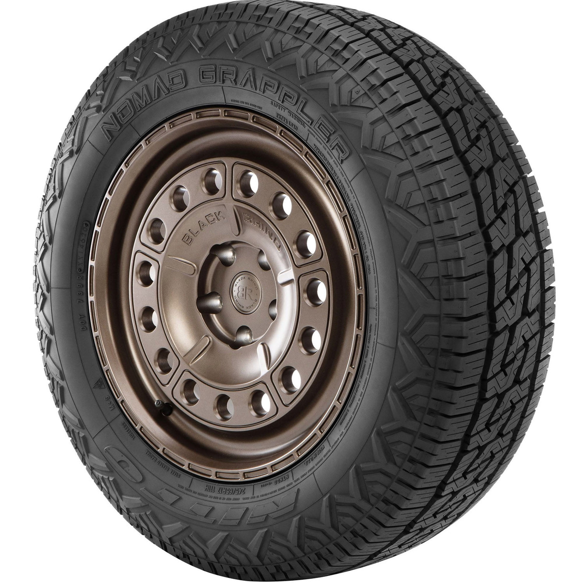 Nitto Nomad Grappler 275/55R20 117H XL OVERVIEW The Nomad Grappler from Nitto is an all-terrain tire that’s built for use on CUVs and SUVs and features a special rubber compound that increases wet and snow traction while also reducing braking distances and lowering road noises. Backed by a 60,000 mile limited manufacturer tread life warranty, the Nomad Grappler’s staggered sidewall lugs boost off-road traction while tapered blocks keep the tire rigid to increase performance on dry roads.
