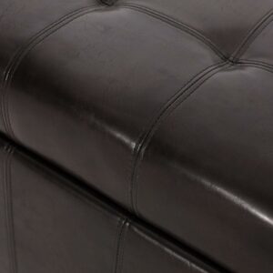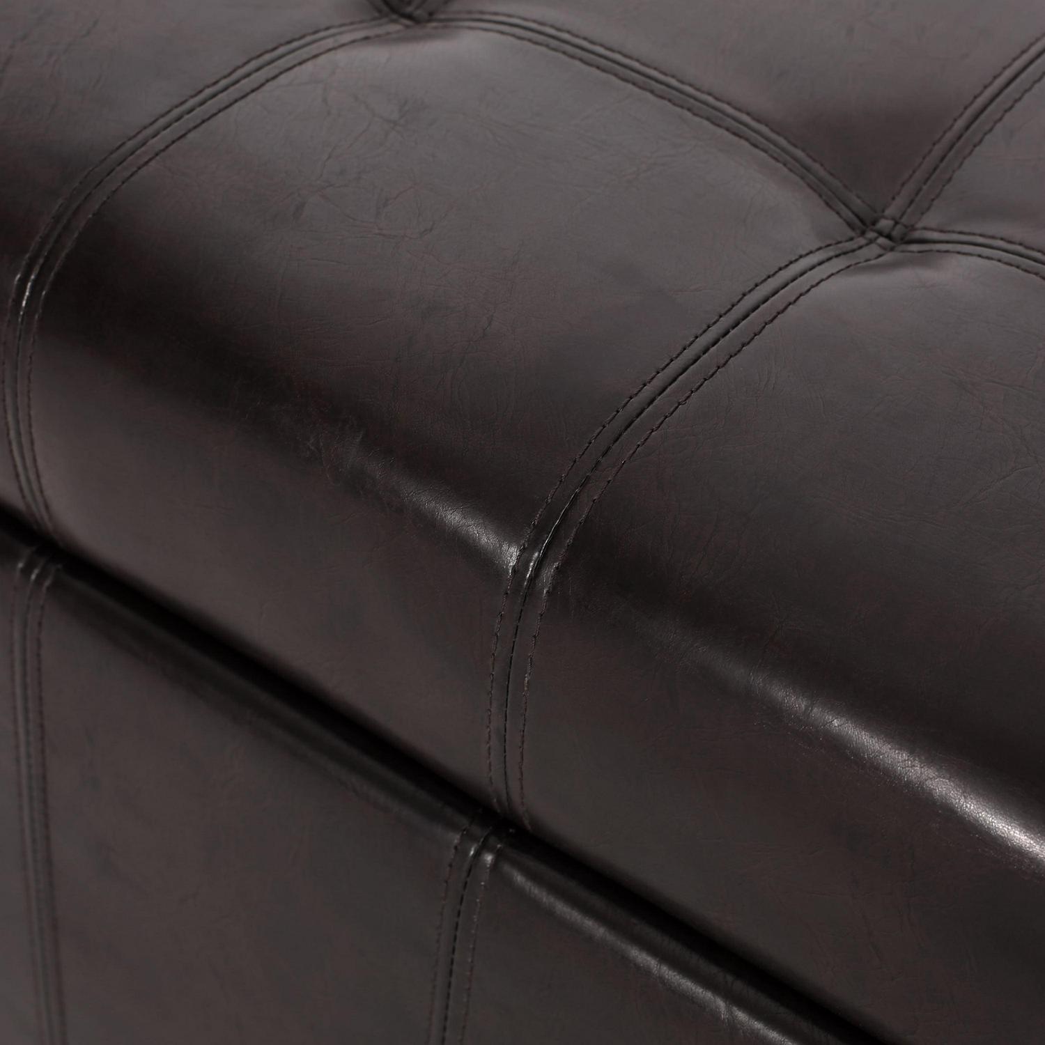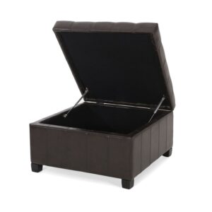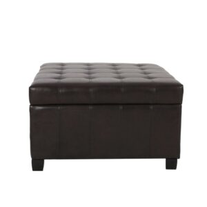 Noble House Allison Contemporary Tufted Bonded Leather Storage Ottoman, Brown and Dark Brown