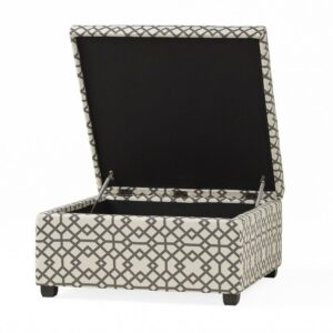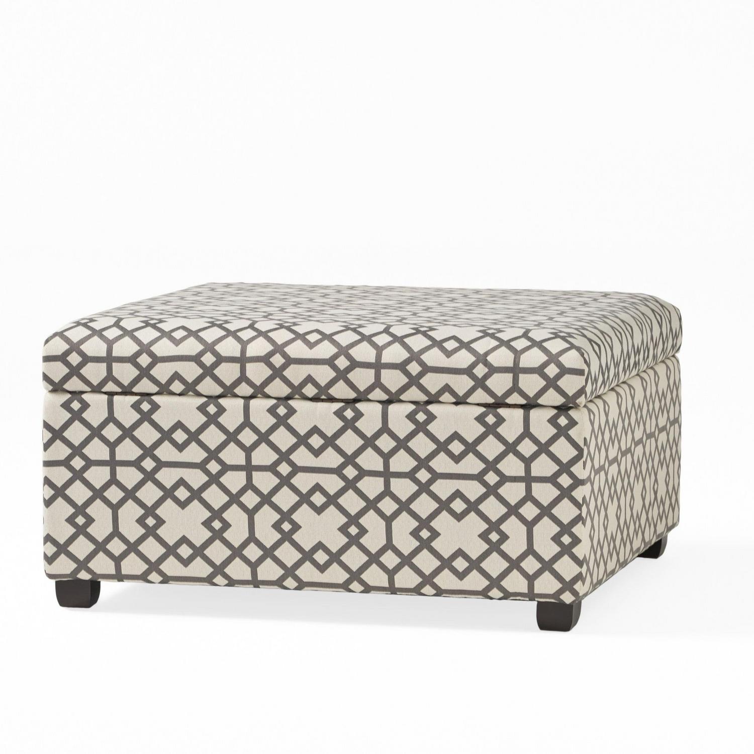 Noble House Bessley Square Lift Top Ottoman, Grey Geometric