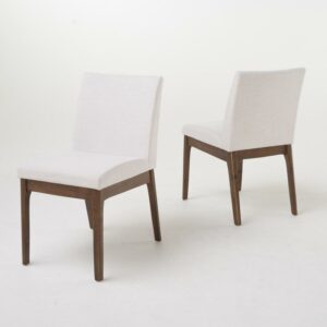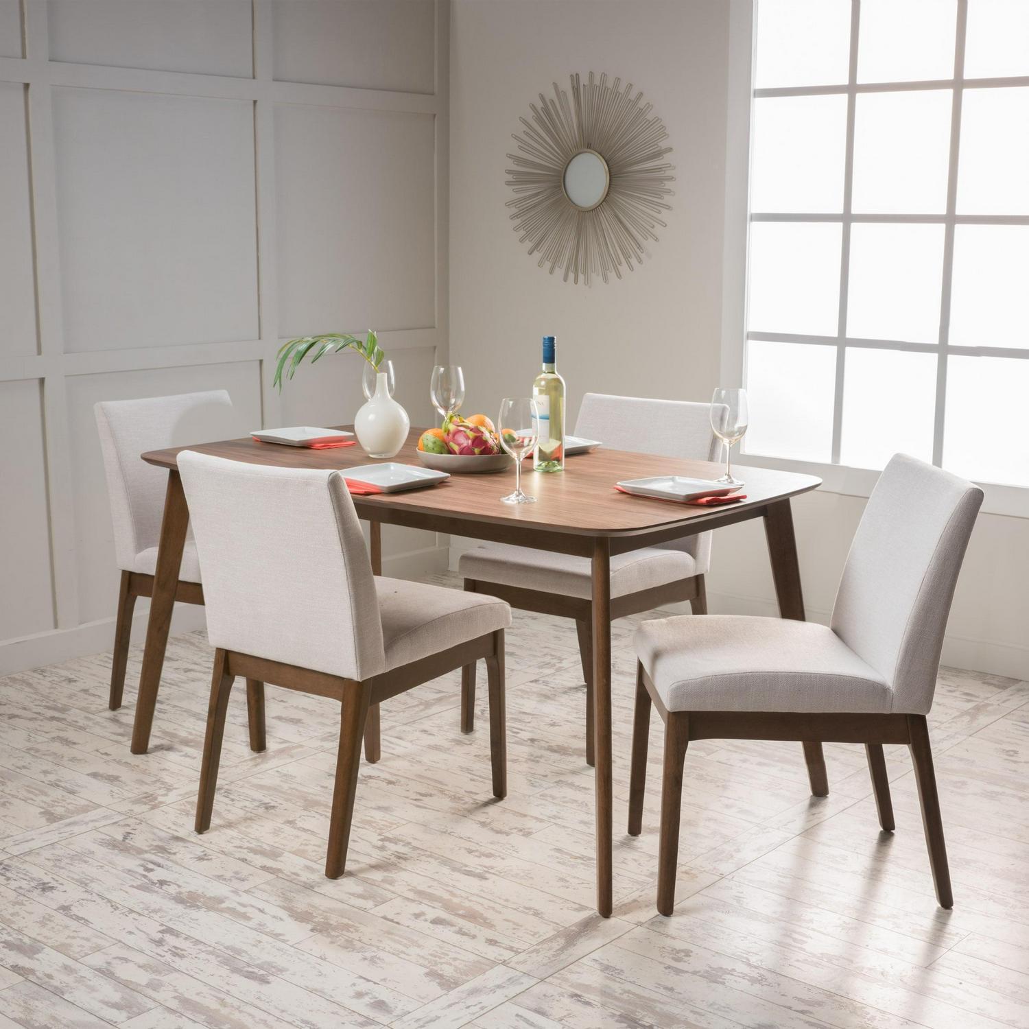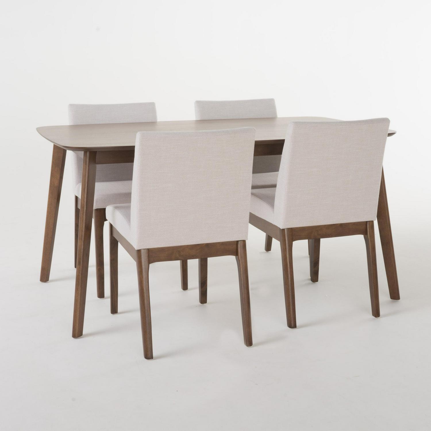 Noble House Caruso Mid-Century Modern 5 Piece Dining Set, Light Beige and Walnut