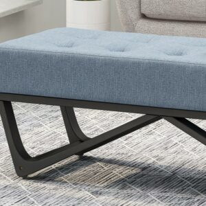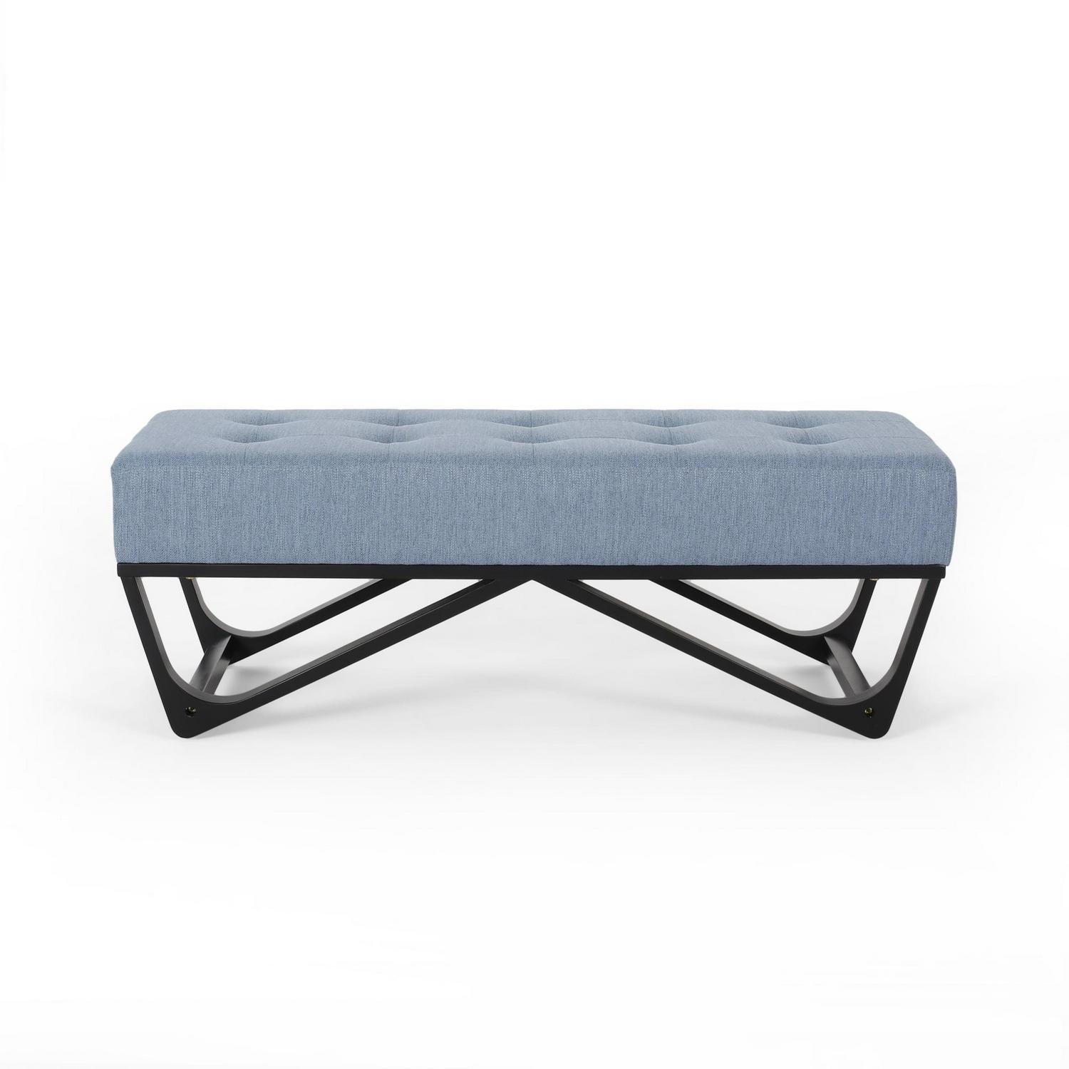 Noble House Dimitri Contemporary Fabric Ottoman Bench, Light Blue and Black