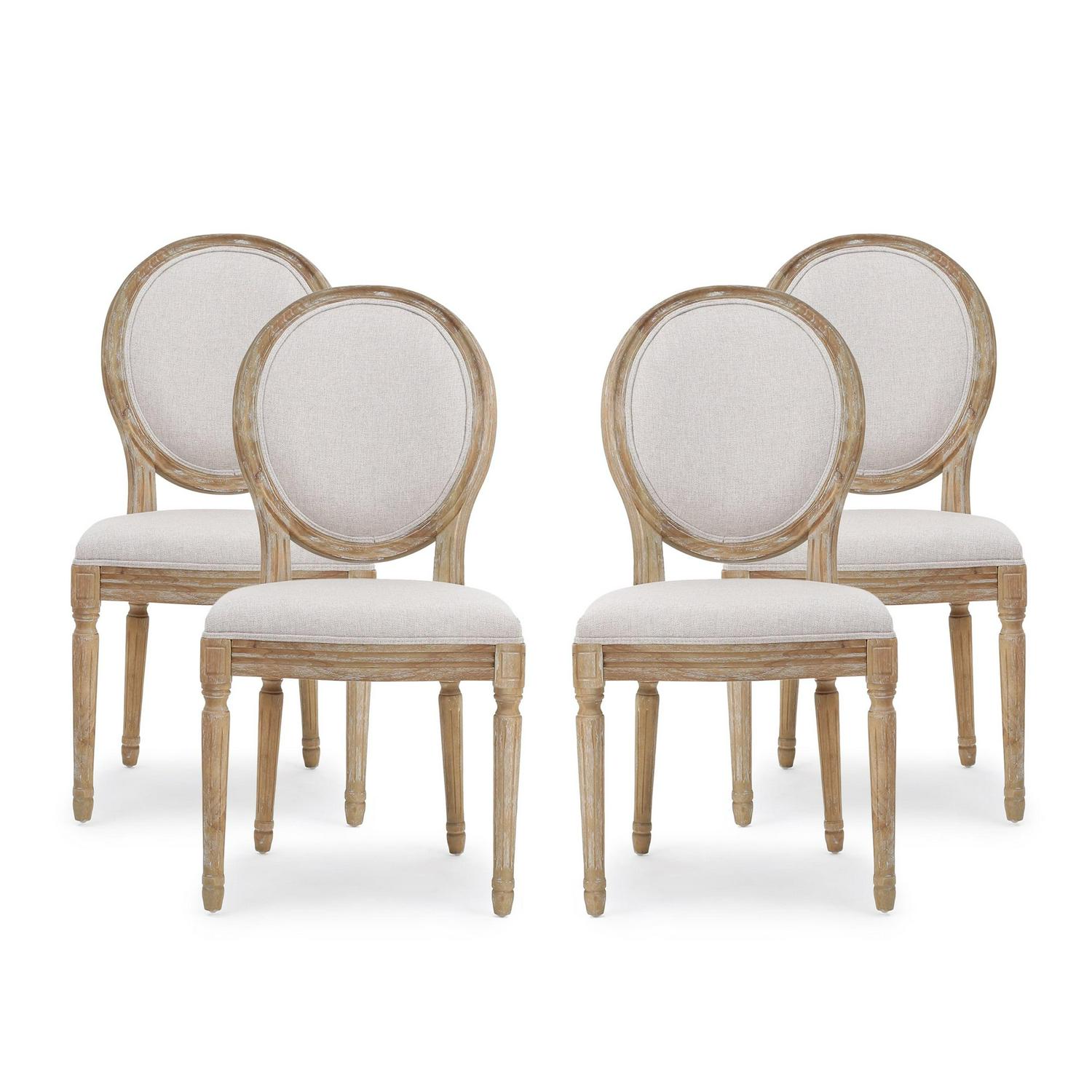 Noble House Karter Indoor French Fabric Dining Chairs, Set of 4, Beige