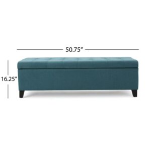 Noble House Maddie Dark Teal Fabric Storage Ottoman: