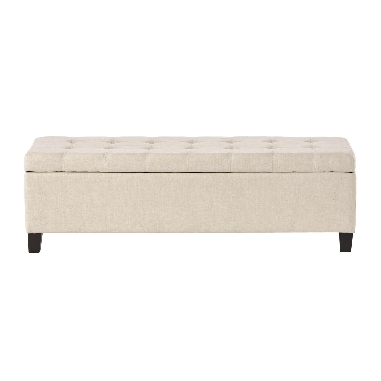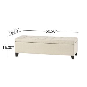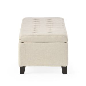 Noble House Meadow Beige Tufted Fabric Storage Ottoman Bench