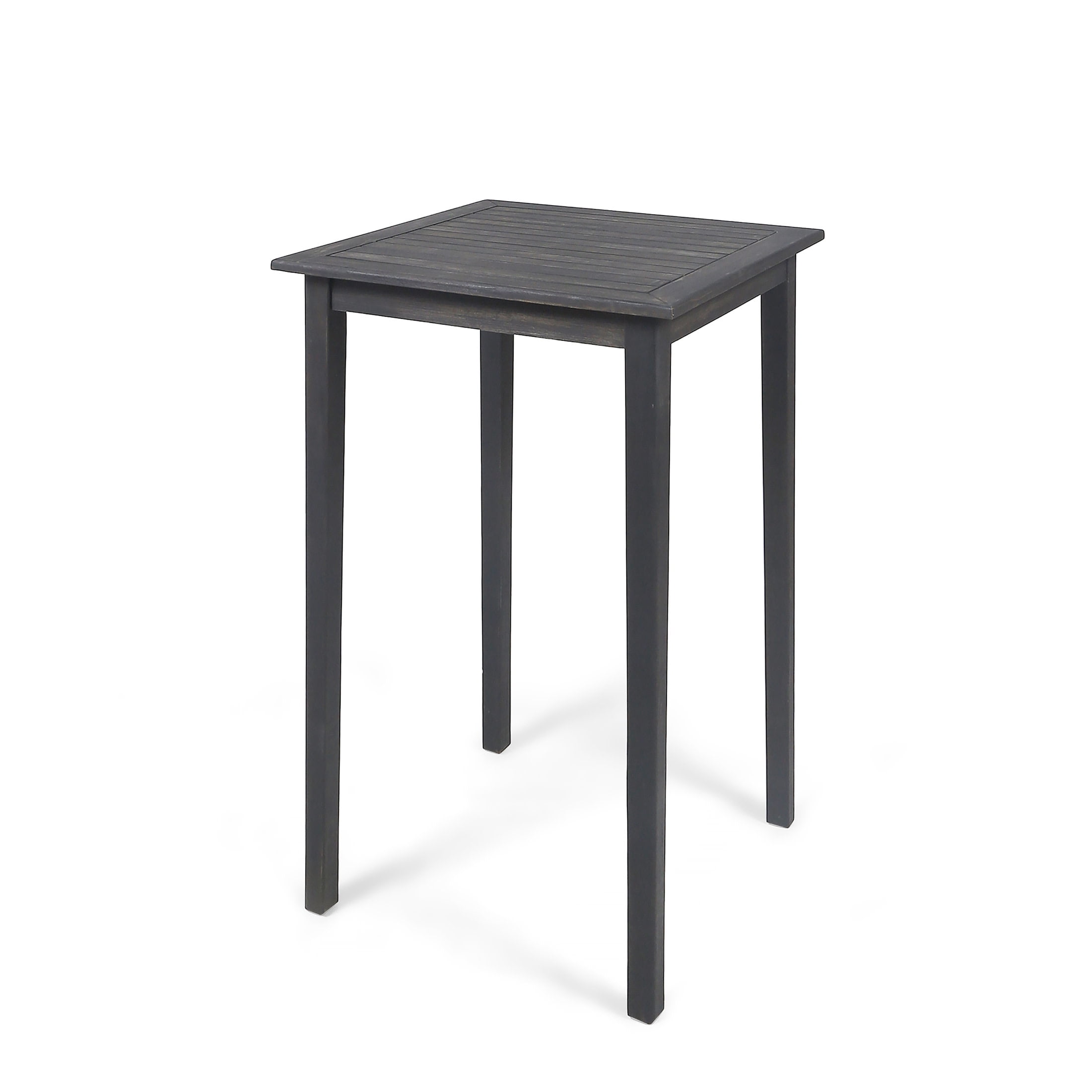 Noble House Polaris Outdoor Acacia Wood Bar Table in Dark Gray: Includes: One (1) Bar Table Material: Acacia Wood Multiple Color Options Assembly Required Dimensions: 26.00 inches deep x 26.00 inches wide x 40.00 inches high Weight Capacity: 187.75 lbs