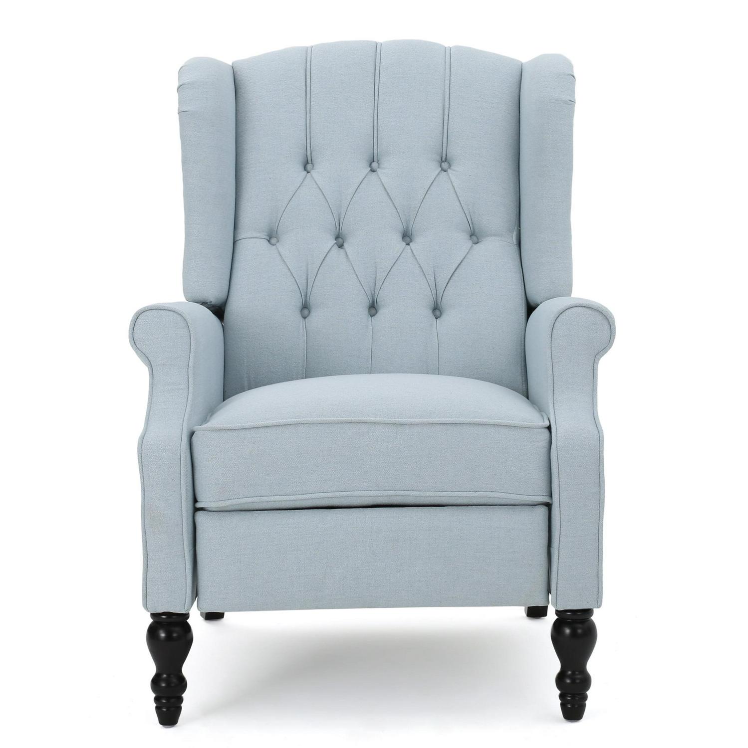 Noble House Woodbridge Light Sky Fabric Tufted Recliner