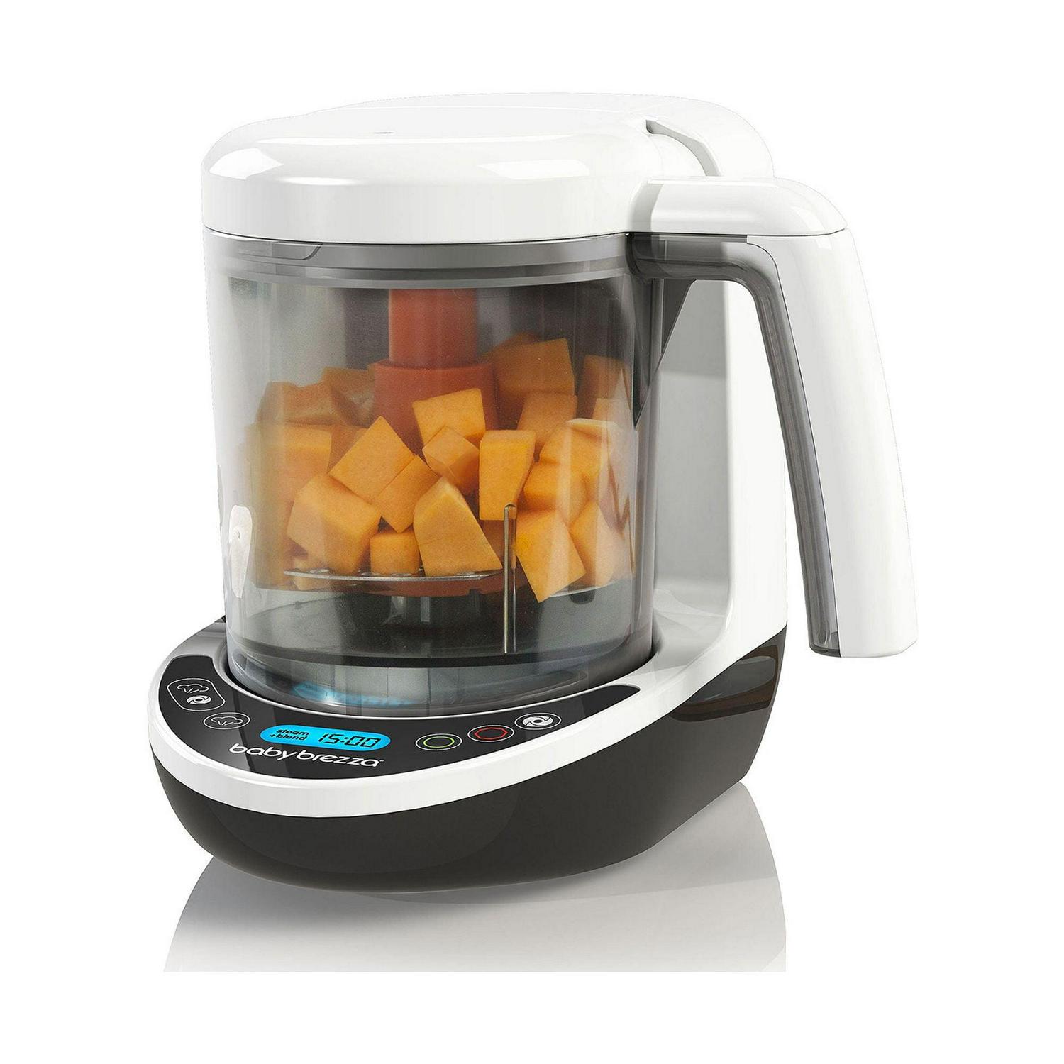 The baby brezza one step baby food maker complete brings healthy, homemade baby food to your table in just minutes. Its one-of-a-kind, patented features take the hassle out of creating delicious, wholesome purees for your baby by automatically blending food after steaming! The bowl has a 3 cup capacity, great for either making a quick meal or cooking several portions at once. The removable water tank makes filling and cleaning a cinch. With the baby brezza one step baby food maker complete, making homemade baby food is truly a breeze! Baby brezza one step baby food maker complete also comes with three reusable feeding and storage pouches, as well as an easy-to-use funnel that makes baby brezza baby food pouches the easiest to fill. 1 Year Limited Warranty.