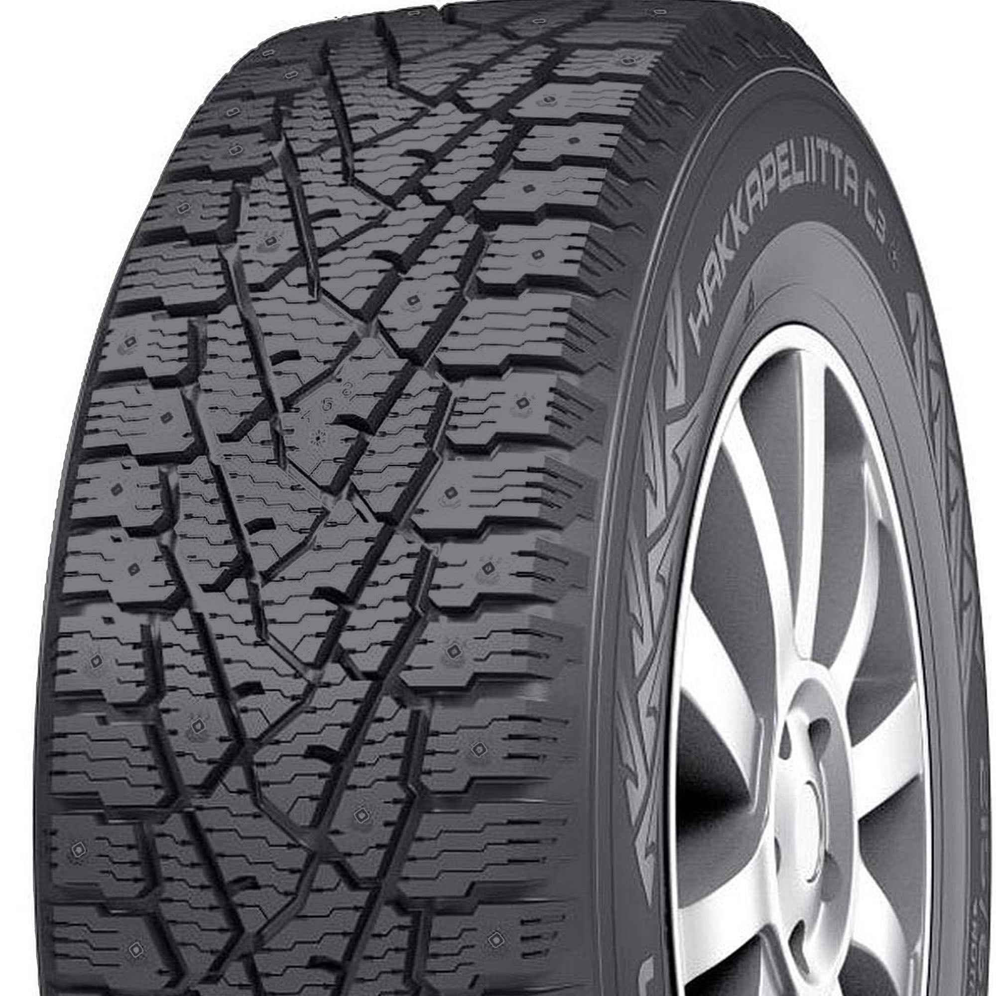 Nokian Hakkapeliitta C3 Studded 175/70R14C 95/93R COVERVIEWThe Nokian Hakkapeliitta C3 Studded tires for delivery vehicles and vans master harsh winter conditions even in heavy duty applications. These tires deliver balanced winter grip thanks to their optimized block arrangement and 3D siping. Nokian’s Aramid technology on the sidewall ensures superior resistance to impacts and punctures while the tough sidewall rubber withstands pressing against the wheel flange to prolong tire life. The wide grooves expel water and slush to enhance safety on wet surfaces while sipes add biting edges for better traction.