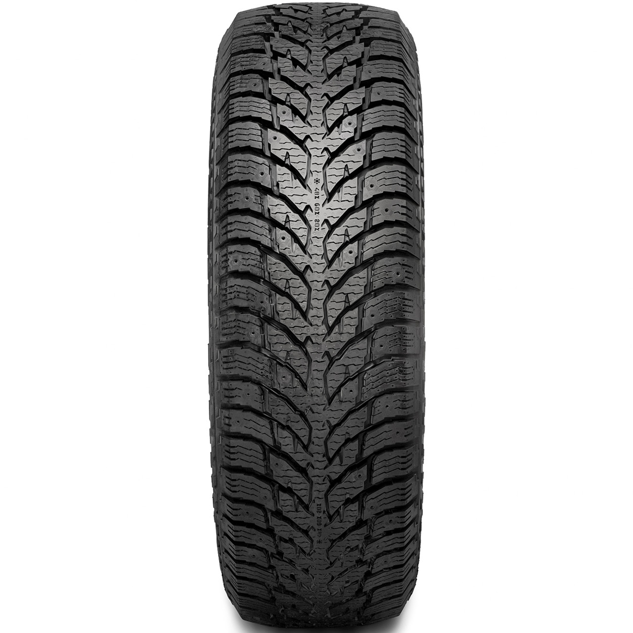 A secure winter weather traction is guaranteed with this model. The detailed directional tread design and the durable winter compound greatly enhance the winter weather, ice, and snow surface grip. The zigzag groove placement and the high-density siping pattern greatly upgrade the grip on the ice- and snow-covered surfaces, while the stronger winter compound’s rubber materials maintain their rubber flexibility at all times. The angled lateral grooves avoid hydroplaning in wet conditions, as they prevent water and slush from blocking the surface contact. The tread area is pinned for studs.