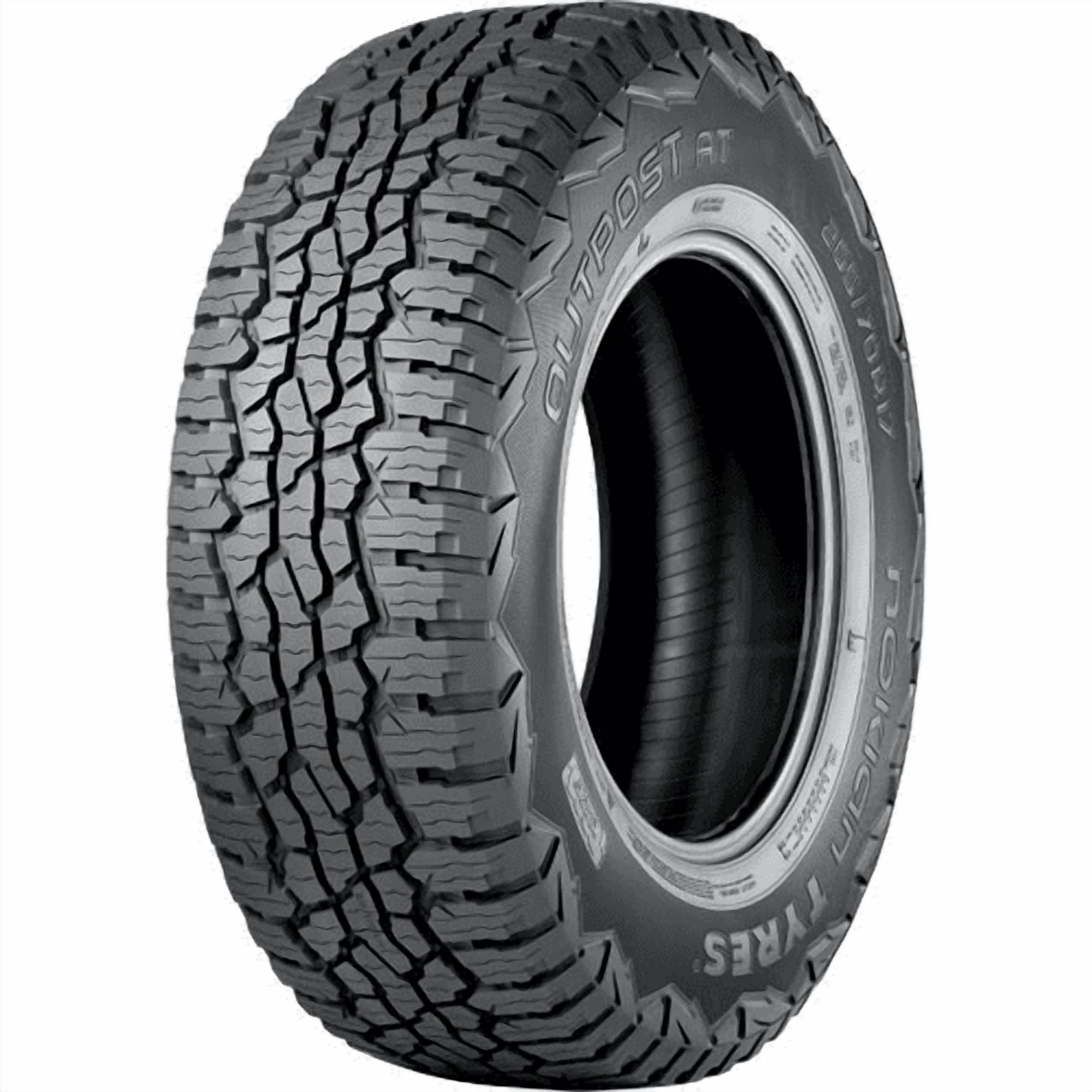 The Nokian Outpost APT is an all-purpose all-terrain tire designed for crossover vehicles, SUVs, and small light trucks. Experience confident handling and reliable traction on various terrains, from paved roads to light off-road adventures. This tire features a durable construction with Aramid Sidewall Technology for enhanced puncture resistance and protection against pothole damage. The Outpost APT’s robust tread pattern provides excellent grip in both wet and dry conditions (3PMSF-rated tire), while a low rolling resistance compound contributes to improved fuel efficiency. Enjoy a comfortable ride and increased peace of mind with the Nokian Outpost APT, and discover why this tire is your best all terrain for everyday drives! Best suited for: Trucks and SUVs Tire Benefits & Features: Unique tread pattern gives confident multi-terrain grip, Aramid Shield technology provides overall tire protection for increased tread life, Puncture-resistant compound for enhanced tire life span, Deep grooves and extra sipes give extra road bite on slippery and icy roads.