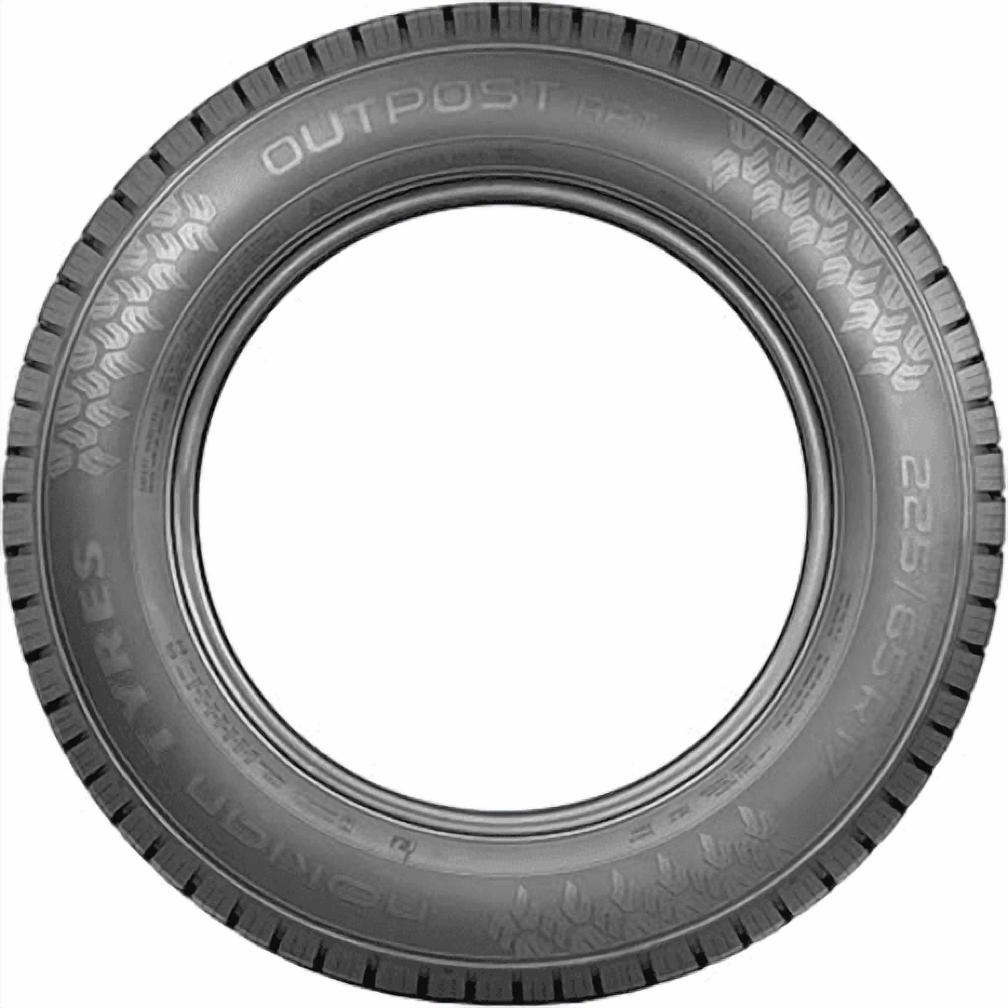 The Nokian Outpost APT is an all-purpose all-terrain tire designed for crossover vehicles, SUVs, and small light trucks. Experience confident handling and reliable traction on various terrains, from paved roads to light off-road adventures. This tire features a durable construction with Aramid Sidewall Technology for enhanced puncture resistance and protection against pothole damage. The Outpost APT’s robust tread pattern provides excellent grip in both wet and dry conditions (3PMSF-rated tire), while a low rolling resistance compound contributes to improved fuel efficiency. Enjoy a comfortable ride and increased peace of mind with the Nokian Outpost APT, and discover why this tire is your best all terrain for everyday drives! Best suited for: Trucks and SUVs Tire Benefits & Features: Unique tread pattern gives confident multi-terrain grip, Aramid Shield technology provides overall tire protection for increased tread life, Puncture-resistant compound for enhanced tire life span, Deep grooves and extra sipes give extra road bite on slippery and icy roads.