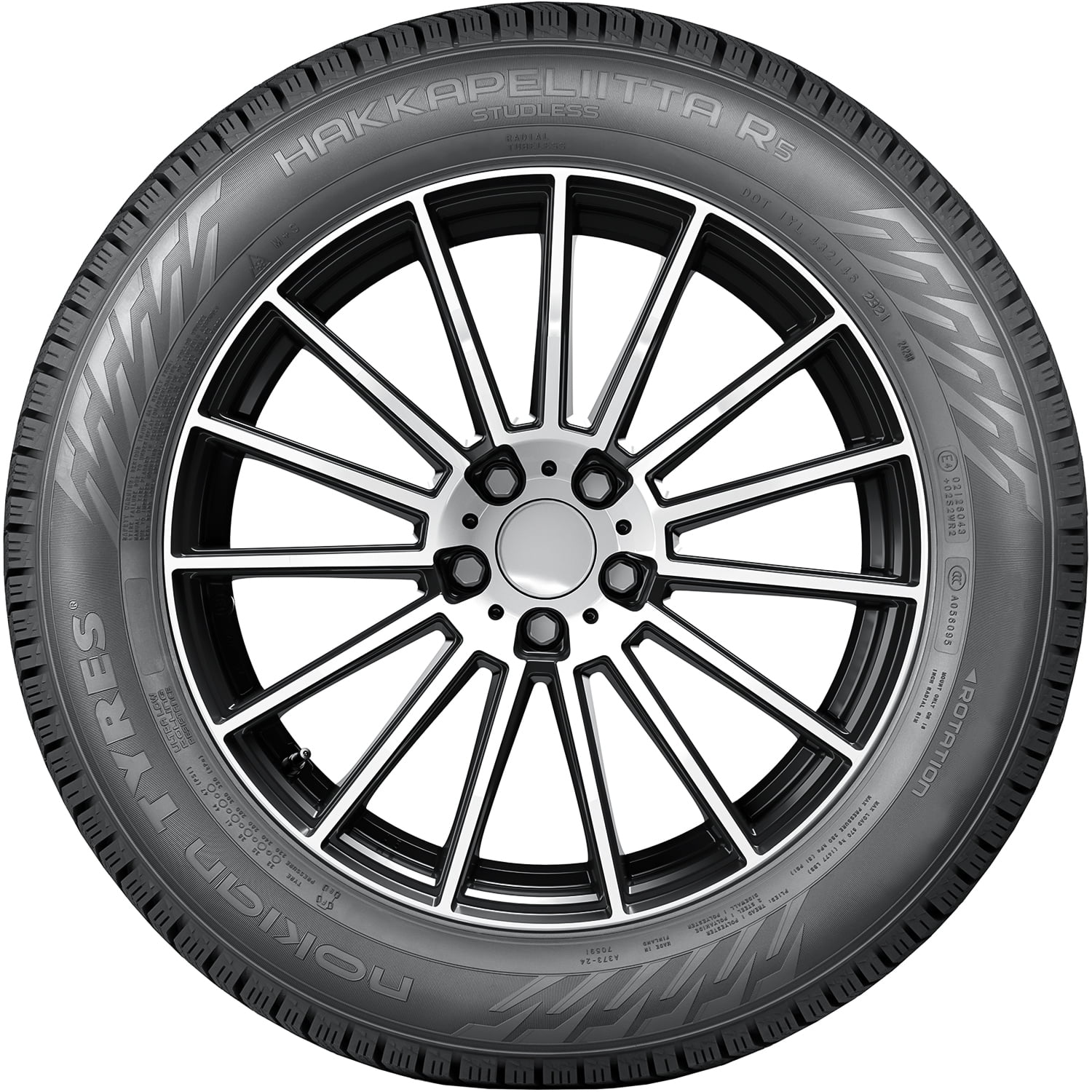 Nokian Tyres Hakkapeliitta R5 OVERVIEW The Nokian Tyres Hakkapeliitta R5 is a touring, winter tire made for passenger vehicles and SUVs. This tire is suitable for electric vehicles. The directional tread pattern and its close road contact boost steering responsiveness and driving stability. In other words, this increases the steering response time and accuracy to the driver’s commands, while the structure is secured against driving pressure. At the same time, large shoulder elements and the strong road grip upgrade cornering. These elements improve overall controllability and maneuvering, which enhances the driver’s control over the vehicle. Excellent winter-weather traction is also promoted with this tread pattern and the winter compound. In this manner, the directional tread pattern can easily maintain road contact in winter conditions. Also, the special compound keeps the rubber flexible in freezing temperatures. These elements work together to improve performance on ice- and snow-covered road surfaces. On the other hand, large grooves eliminate water and slush from the footprint, preventing hydroplaning in wet situations. The model is fuel-efficient. This directional tread pattern and the special rubber compound can reduce the rolling resistance. The rolling resistance is the pressure that determines how much energy the vehicle needs to keep the tires in motion. It can decrease fuel consumption and CO2 emissions, for a fuel-efficient and environmentally friendly driving experience. The Nokian Tyres Hakkapeliitta R5 boosts driving comfort levels. The tread design is able to reduce road and tread noise significantly. The pattern channels airwaves through the footprint, preventing them from coming into contact with tread elements and generating noise. This tread allows the passengers to enjoy a quiet performance. Manufacturers recommend changing tires every 10 years. As long as tires are properly stored before they are sold, the year of their manufacture will not shorten their service life.