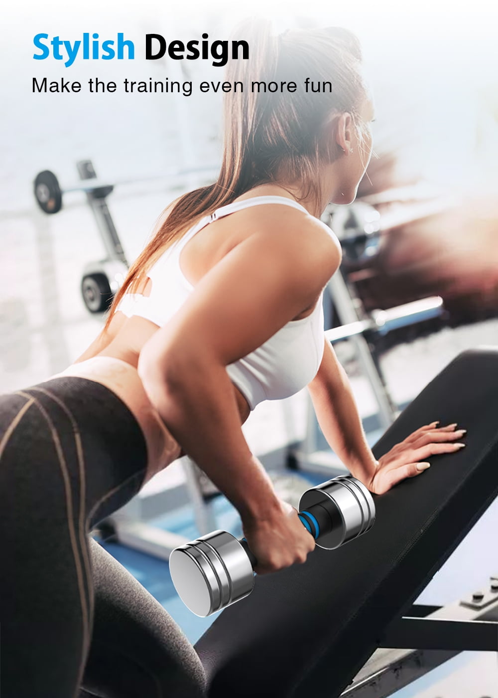EASY WEIGHT ADJUSTMENT: No need to buy multiple dumbbells as one dumbbell can be adjusted to multiple weights at home. With its no nut design, just unscrew the plate to quickly adjust the weight. The weight ranges for this size 10lbs/14lbs/16lbs/20lbs IMPROVE EXERCISE EFFECT: This dumbbell is made of steel, small in size, and easy to grasp. Using this dumbbell the movements can be more precise, deepening the muscle stimulation and enhancing the training effect. SAFE & FIRM DESIGN: The dumbbell is precisely cut from a single piece of high-quality steel without any welding. Each dumbbell piece is locked to the next, avoiding the problems of traditional dumbbells in which the dumbbell piece shakes due to a loose nut. COMFORTABLE EXERCISE EXPERIENCE: The handle is made of a foam material which is safe, non-slip, does not hurt your hands, reduces hand pain caused by heavy weight, and allows you to persist in completing the training. SUITABLE FOR HOME USE: Convenient due to its small size, easy storage, and ability to be placed upright. The attached rubber rings can be easily installed in the groove of the dumbbell to avoid abrasions to the floor.