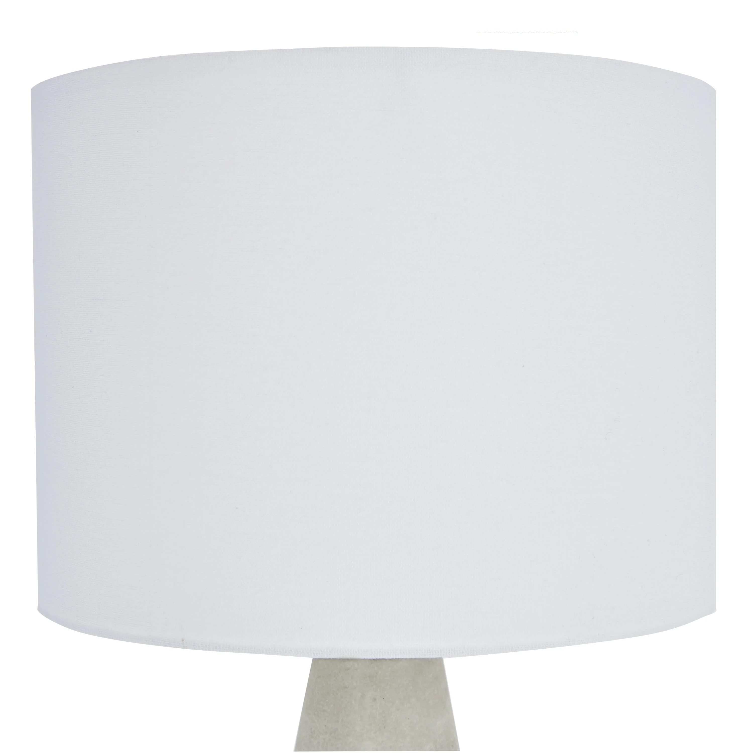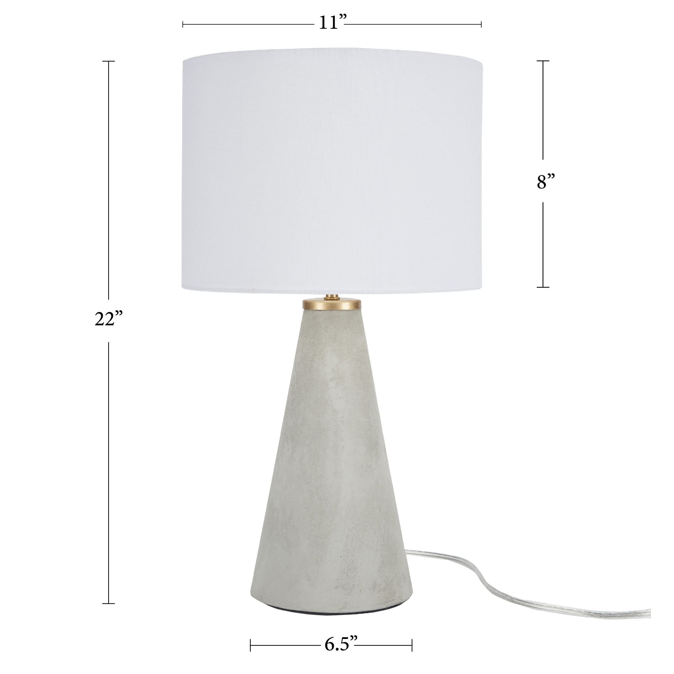 Sturdy concrete table lamp with a smooth finish and heathered drum shade Product dimensions: 12-in x 12-in x 22-in Rotary switch; 80-in clear cord Bulb not included Minimal Assembly Required