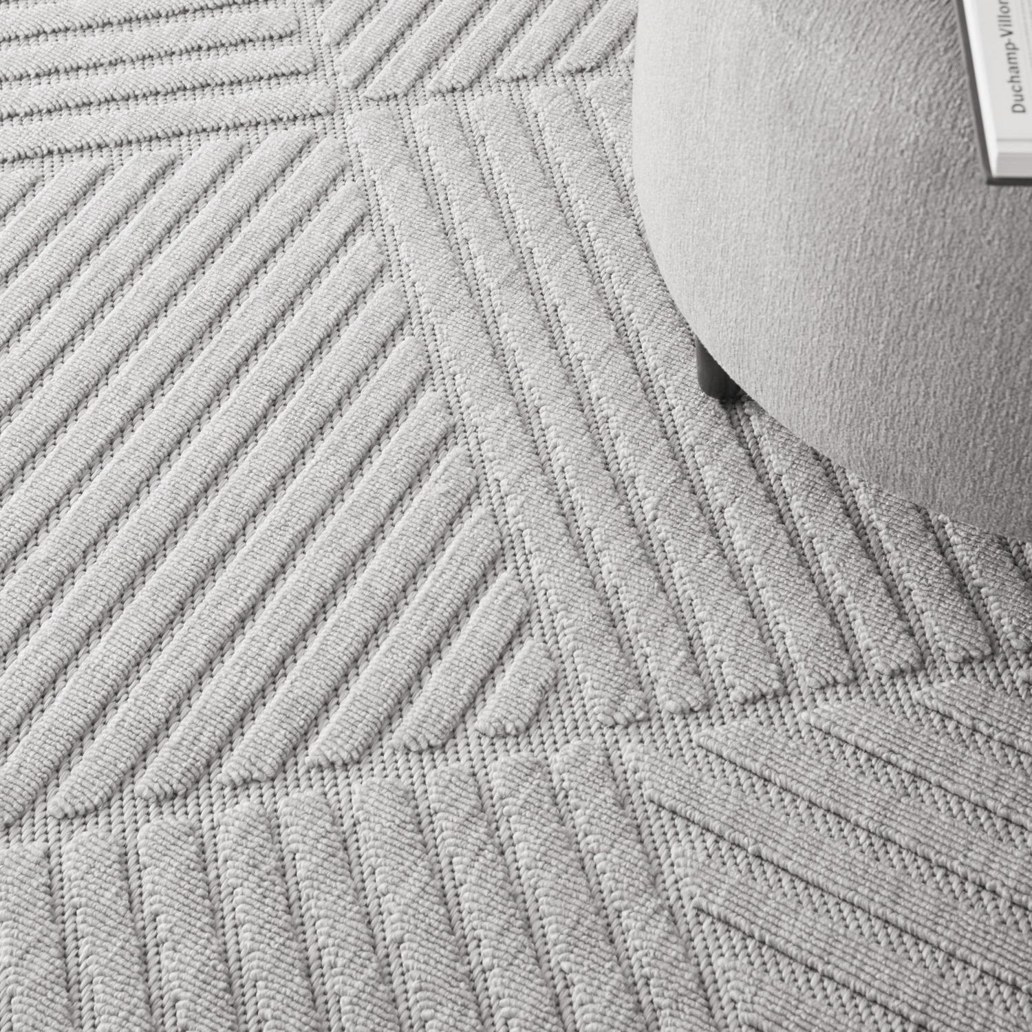 Can a rug sturdy enough for both indoor and outdoor use also be chic and attractive For sure, if it’s from the Palamos Collection. These durable and fade-resistant area rugs are ideal for the casual lifestyle and work just as well in covered outdoor locations such as patio or porch as they do in your living room, family room or other favorite spot. Distinguished by their high-low pile, Palamos area rugs take a visual cue from hand-carved rugs but are easily affordable and designed to withstand wear. This contemporary collection ranges from linear and geometric to sprightly florals all enhanced by dimensional pile in today’s most coveted neutral tones. Decorating is easy (and fun!) with the casual chic of textural Palamos, power-loomed in modern poly-fibers. A striking geometric design celebrates texture with a high-low pile in crisp squares and stripes. This chic and contemporary Palamos area rug creates a subtle focal point in any indoor or protected outdoor location. A versatile decorating accent in misty light grey.