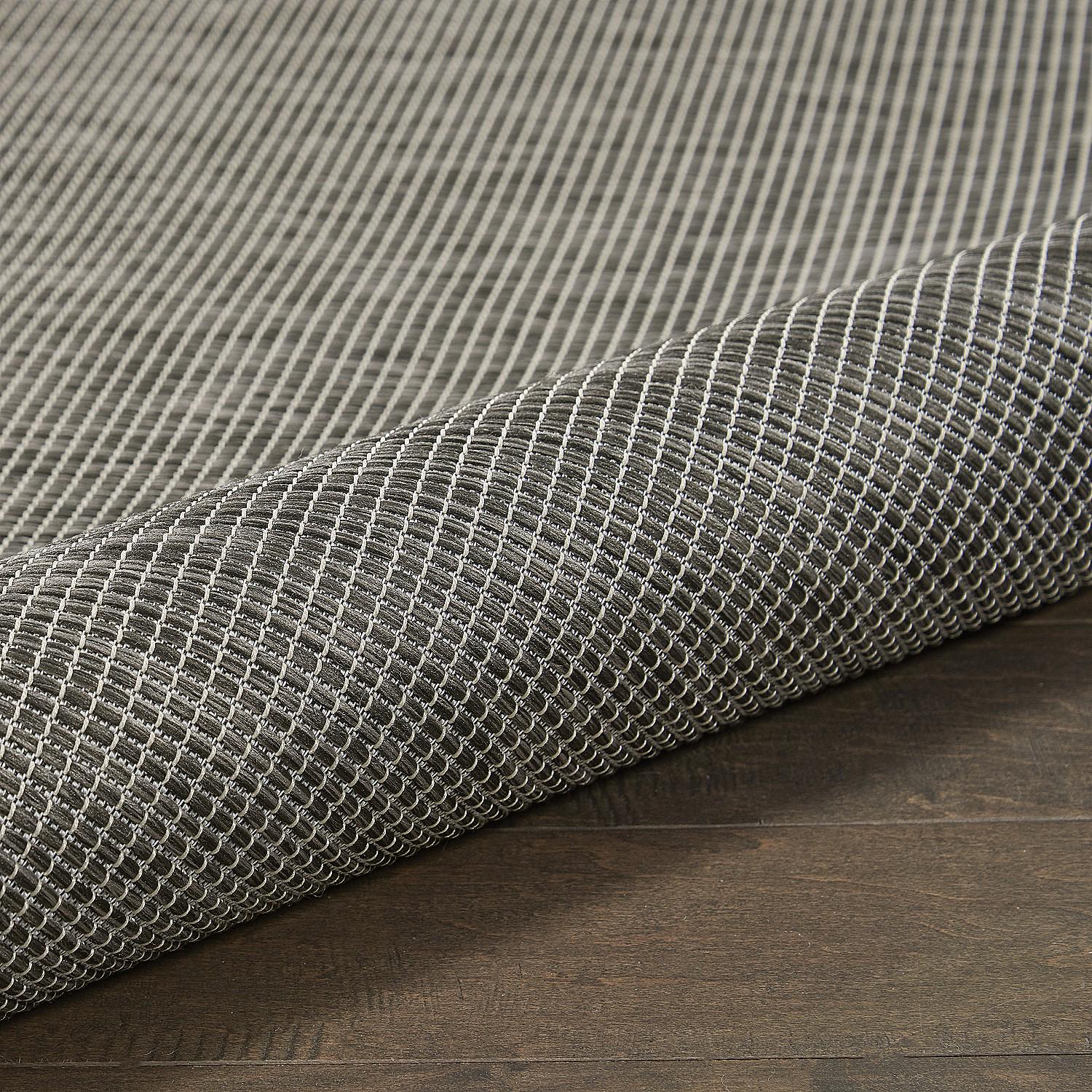 The appealing texture of this Positano outdoor rug is made beautifully visible by the space-dyed color variations of its striated yarns. This flatweave rug is machine-made from durable polypropylene fibers for easy cleaning: simply hose rinse and air dry. This versatile design easily fits in a variety of spaces from your outdoor patio conversation area to your living room, dining room, or kitchen. The simple, solid pattern is great for layering with other rugs. OEKO-TEX certified.