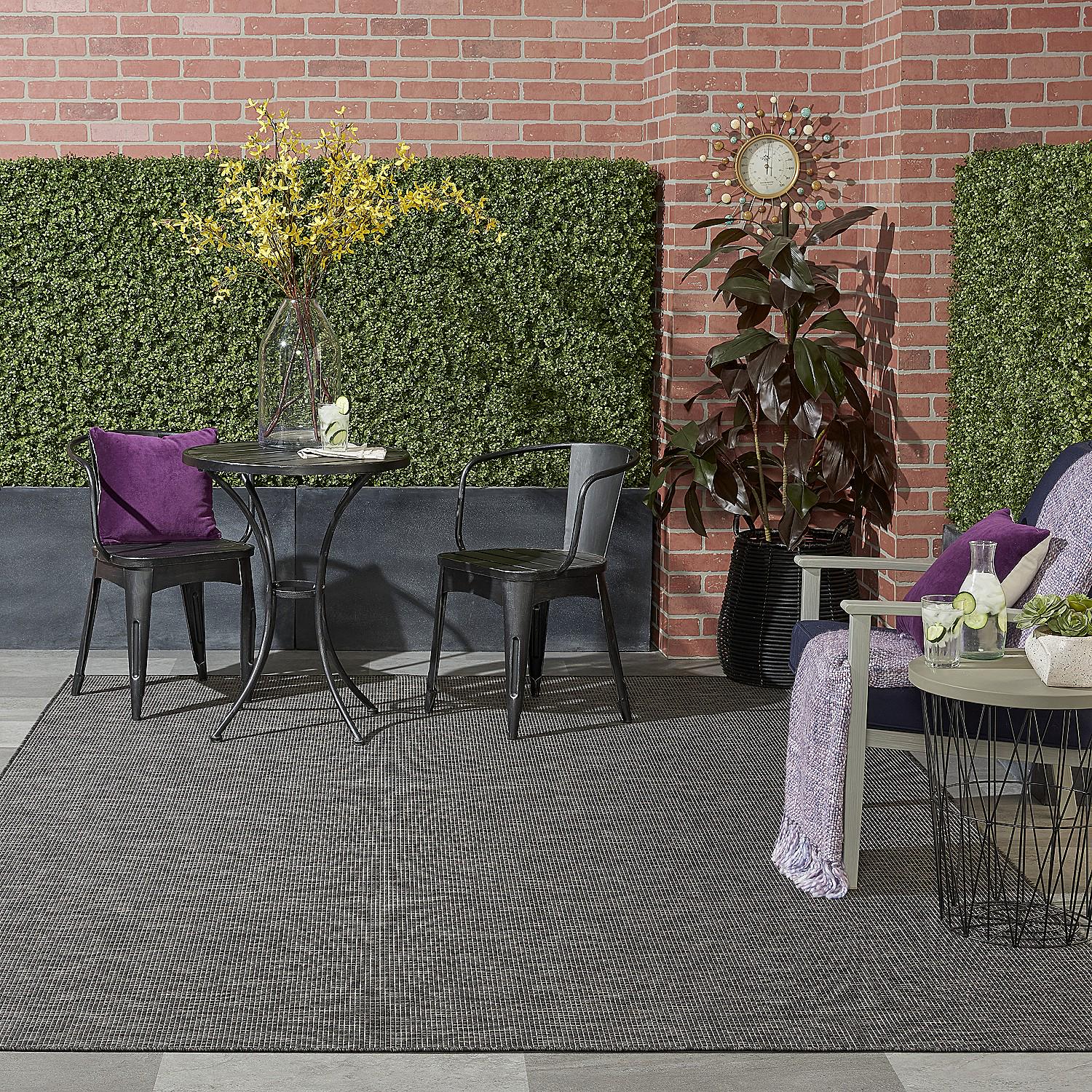 - Features: Easy-care fibers, Space-dyed, Indoor/outdoor