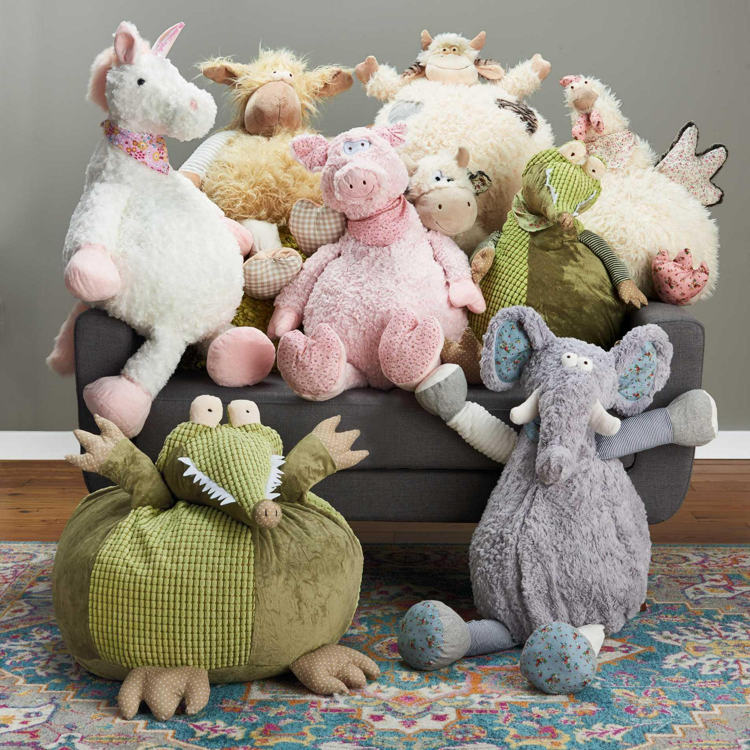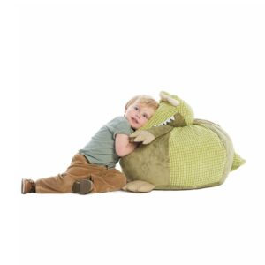This cuddly crocodile is soft enough to cuddle and big enough to use as a pouf. This versatile friend can be used as a bedtime buddy, a floor decoration, or even an ottoman.