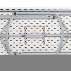 Our BT2448 rectangular blow-molded plastic folding tables are suitable for indoor or outdoor in any application that calls for affordable, lightweight, weather-resistant and highly durable folding tables. Their lightly textured design keeps them scratch-resistant yet still enables a surface smooth enough for writing. The plastic tabletop is heat-resistant up to 212º F and designed to hold up to 400 lbs. of distributed weight! The tabletop color is a speckled gray matching the textured gray powder-coated 17-gauge steel frame.