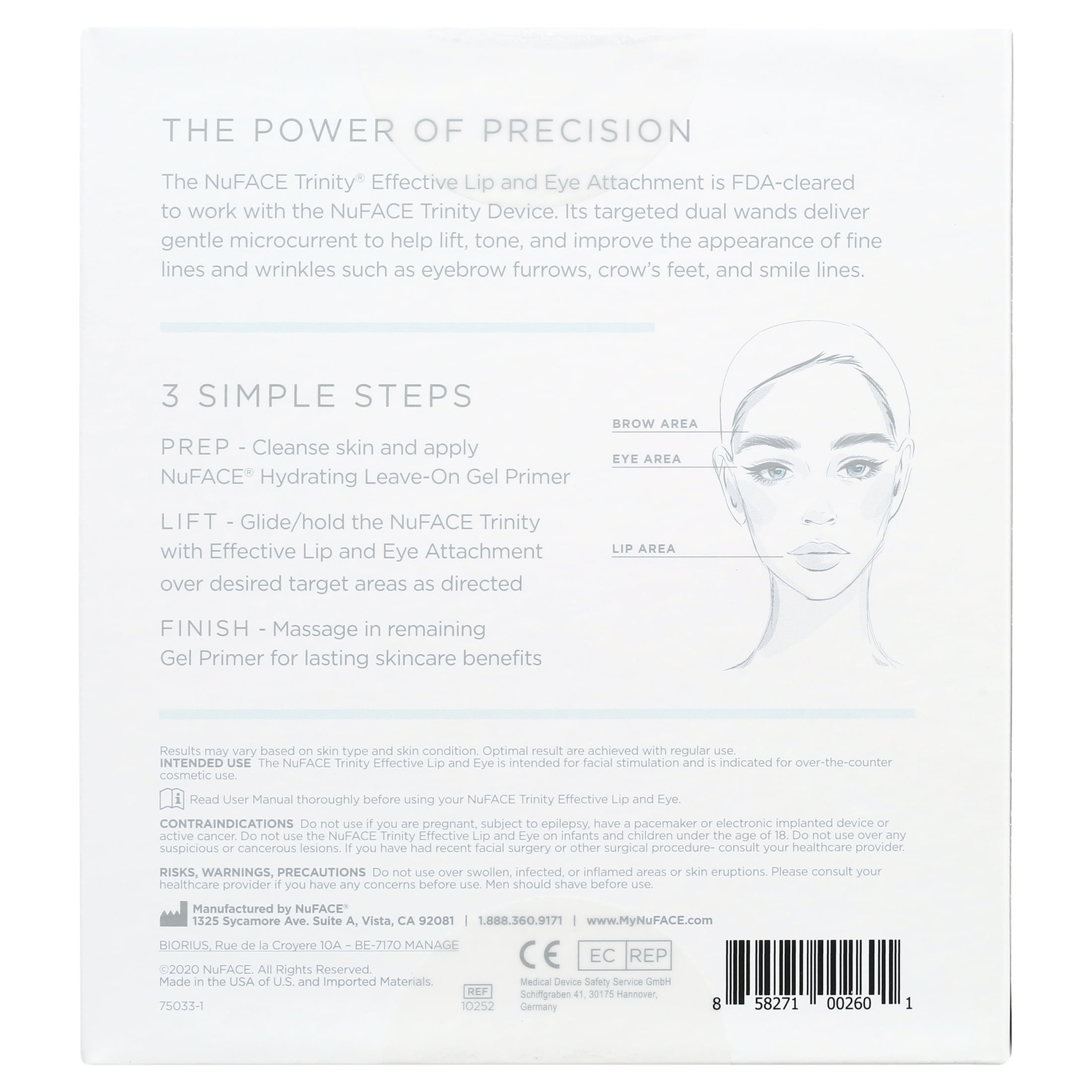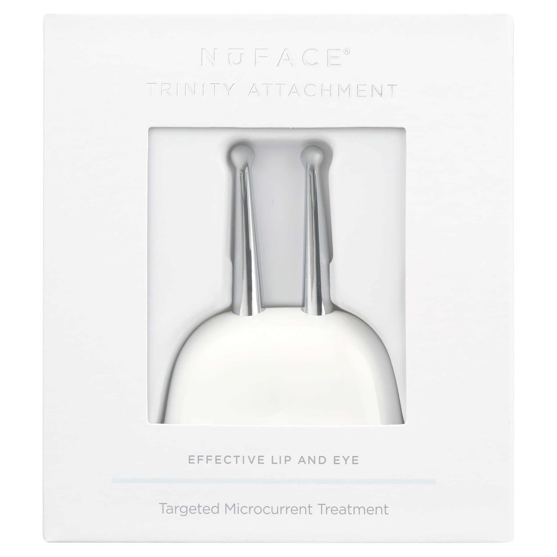Use the Effective Lip & Eye Attachment for Trinity to tone and tighten lines around the eyes and lips and lift brows in just minutes. Simply click on to attach to your Trinity facial toning device, then use the dual-wand attachment to send gentle microcurrent to the delicate skin around eyes and lips. The result is a smoother, lifted, visibly more youthful appearance in just minutes a day. HOW TO USE: CLEANSE: With an oil-free cleanser. BOOST: Apply a few drops of NuFACE® Ionized Super Boosters onto fingertips and massage into clean, dry skin until fully absorbed. ACTIVATE + LIFT: Brush a mask-like layer of your favorite NuFACE® Microcurrent Activator in sections as you lift. Perform glides/holds using your NuFACE Trinity® Microcurrent Device. FINISH: Apply eye cream, moisturizer, and don’t forget SPF!