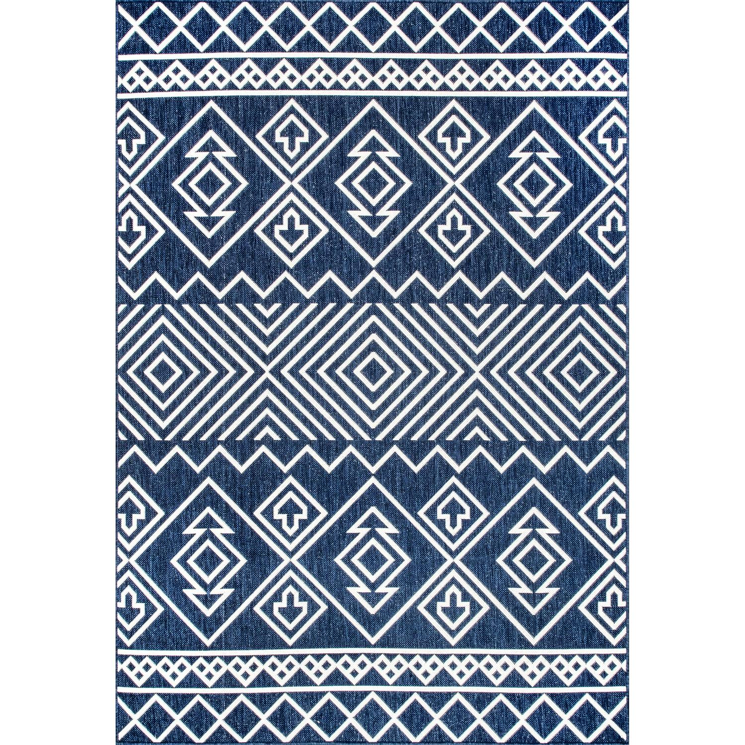 nuLOOM Celine Aztec Indoor/Outdoor Area Rug, 9′ 6 x 12′, Blue