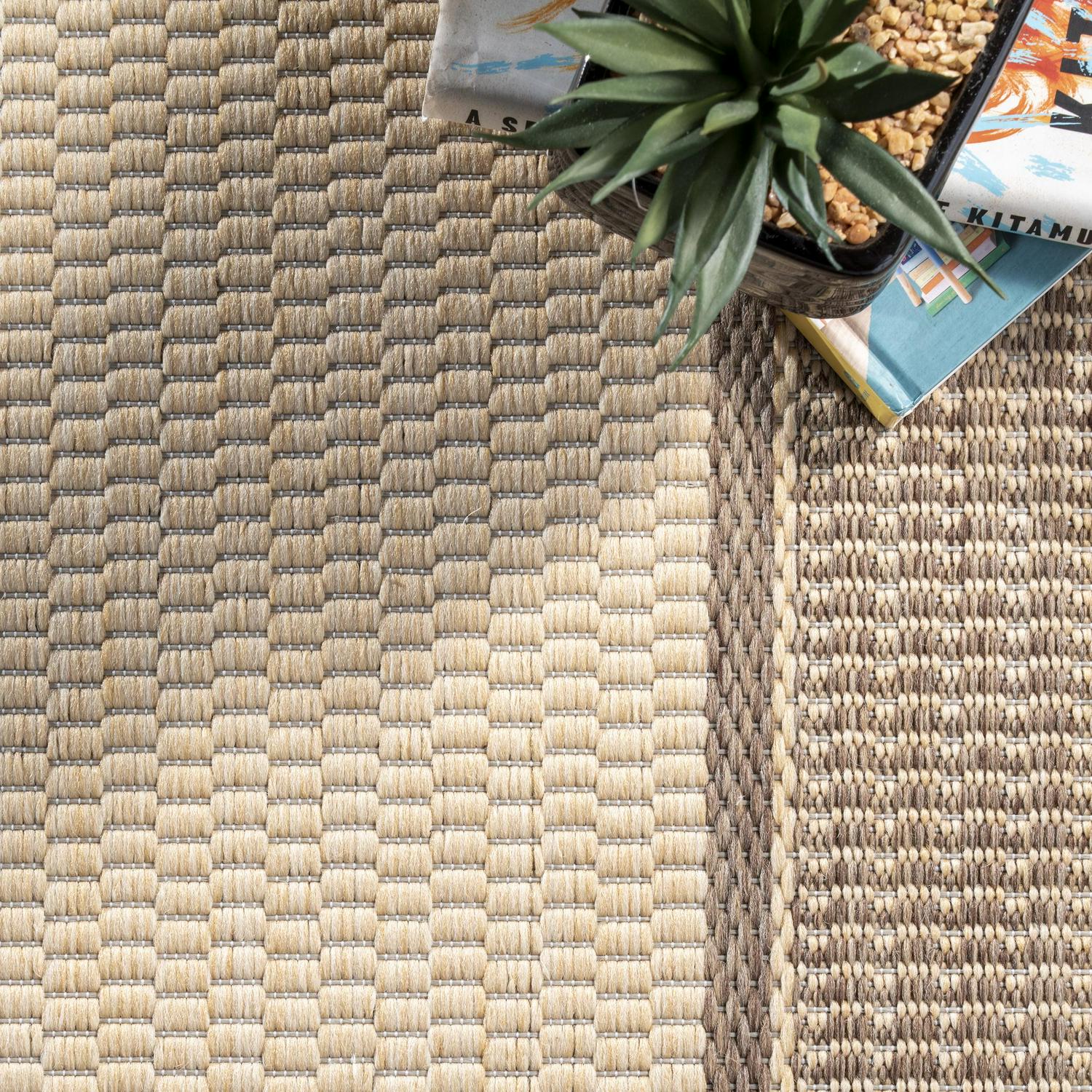 Whoever said beautiful floor accents are only for inside the home hasn t yet met this contemporary indoor/outdoor area rug. This floor covering has neutral hues that is designed to blend seamlessly with any of your current décor and made with durable fibers to last for years to come. Place this rug in your dining room or on your patio to tie together your space. Kick back and relax with our easy to care for and pet-friendly area rugs.