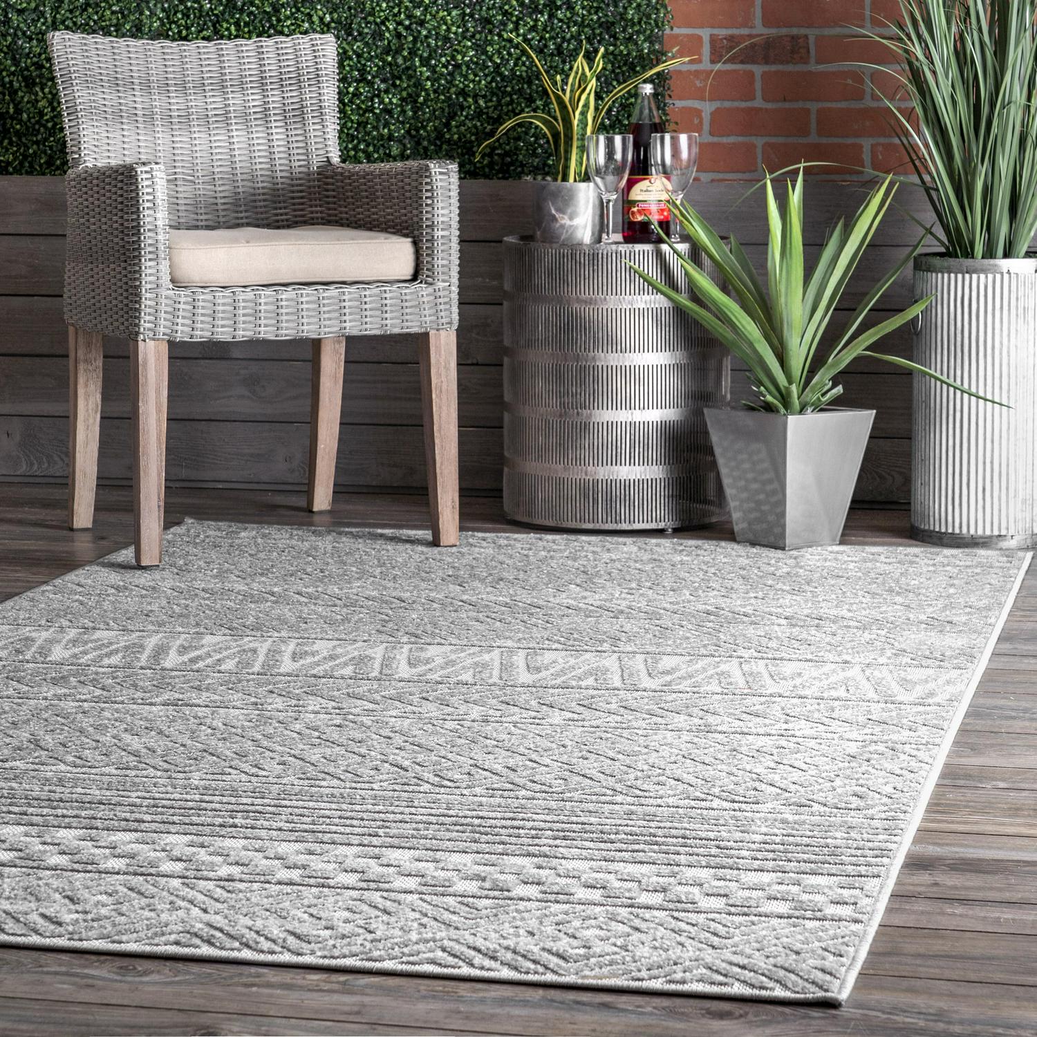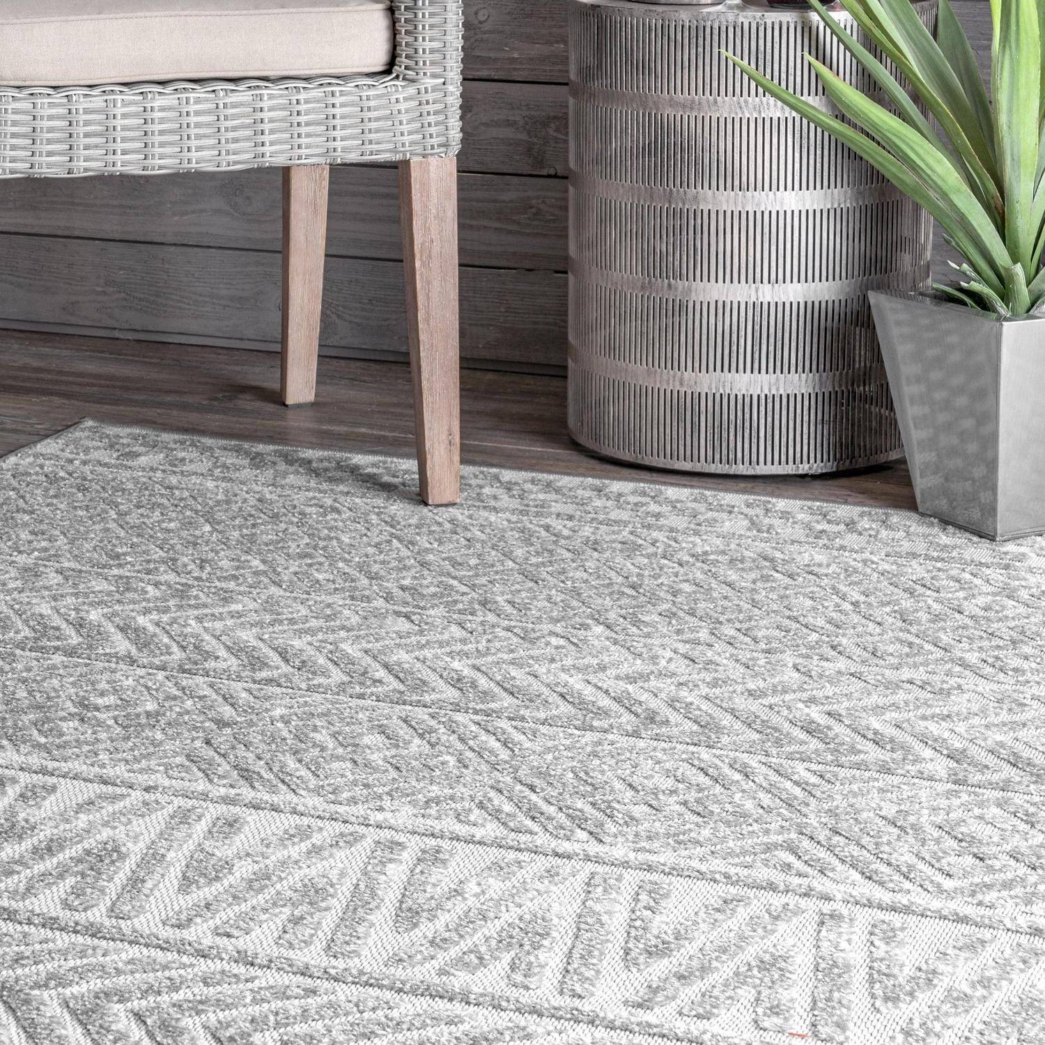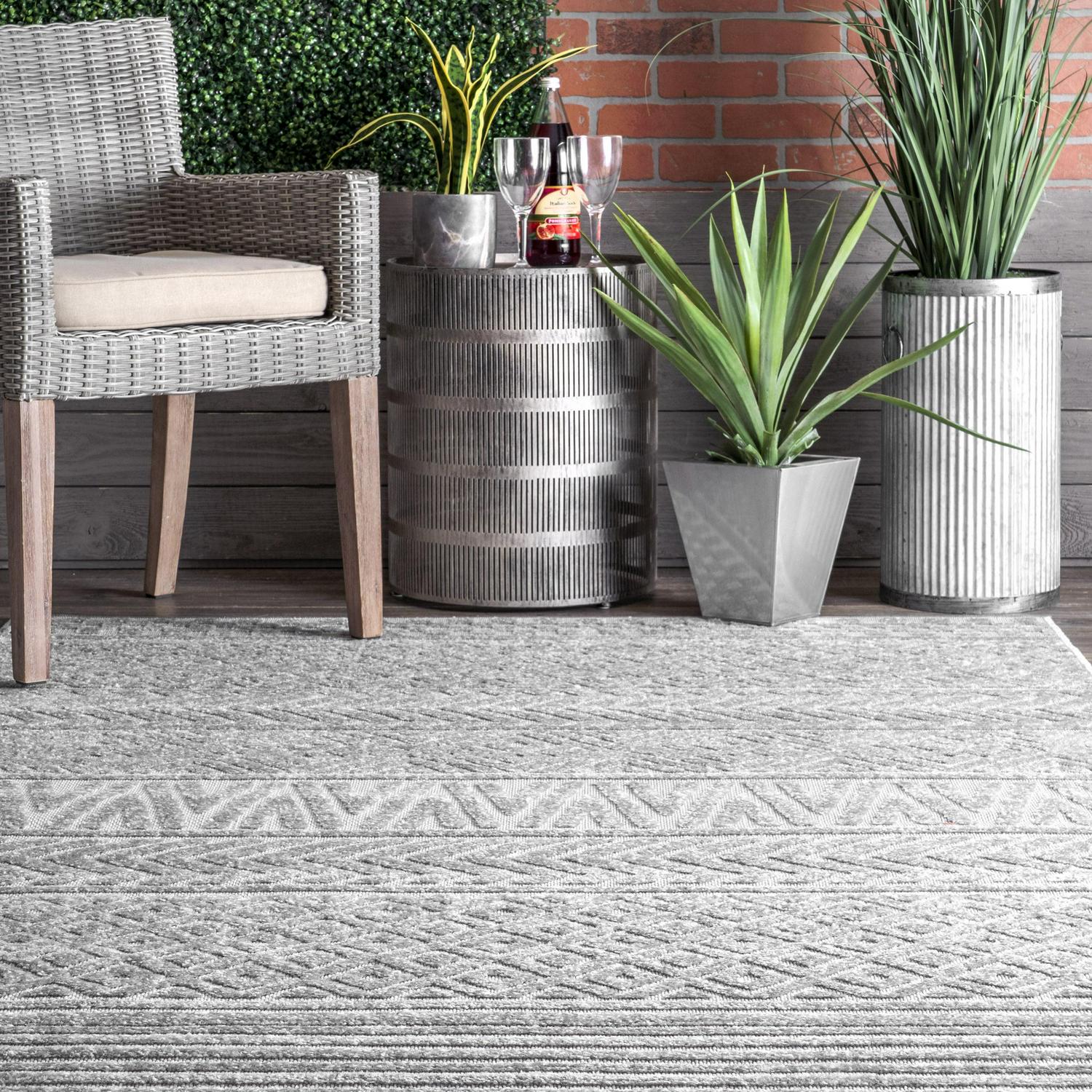 nuLOOM Kamryn Textured Tribal Indoor/Outdoor Area Rug, 5′ x 8′, Grey