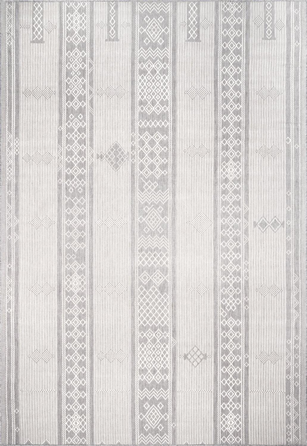 nuLOOM Leigh Ethnic Stripes Indoor/Outdoor Area Rug, 8′ x 10′, Light Gray