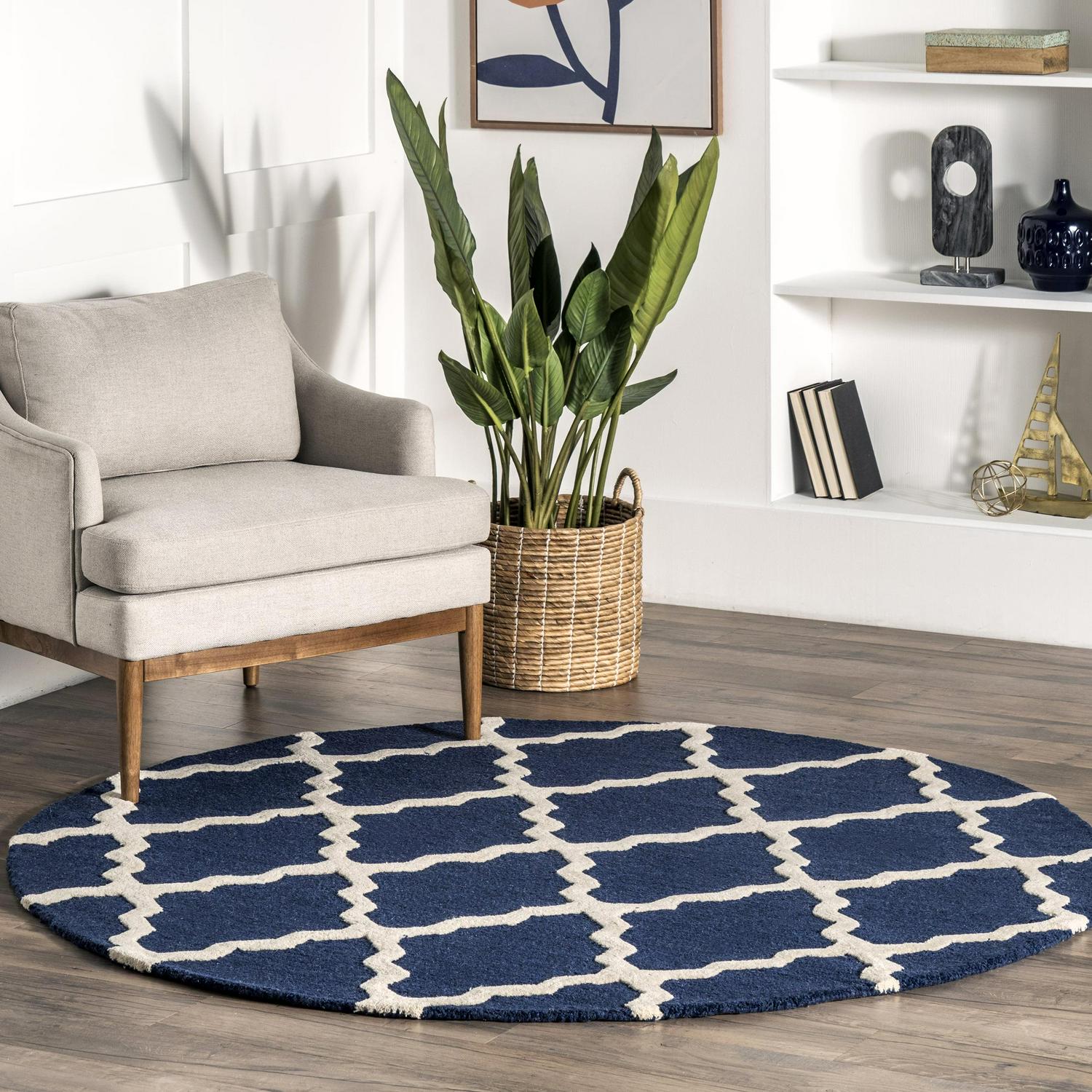 nuLOOM Marrakech Trellis Wool Area Rug, 8′, Navy