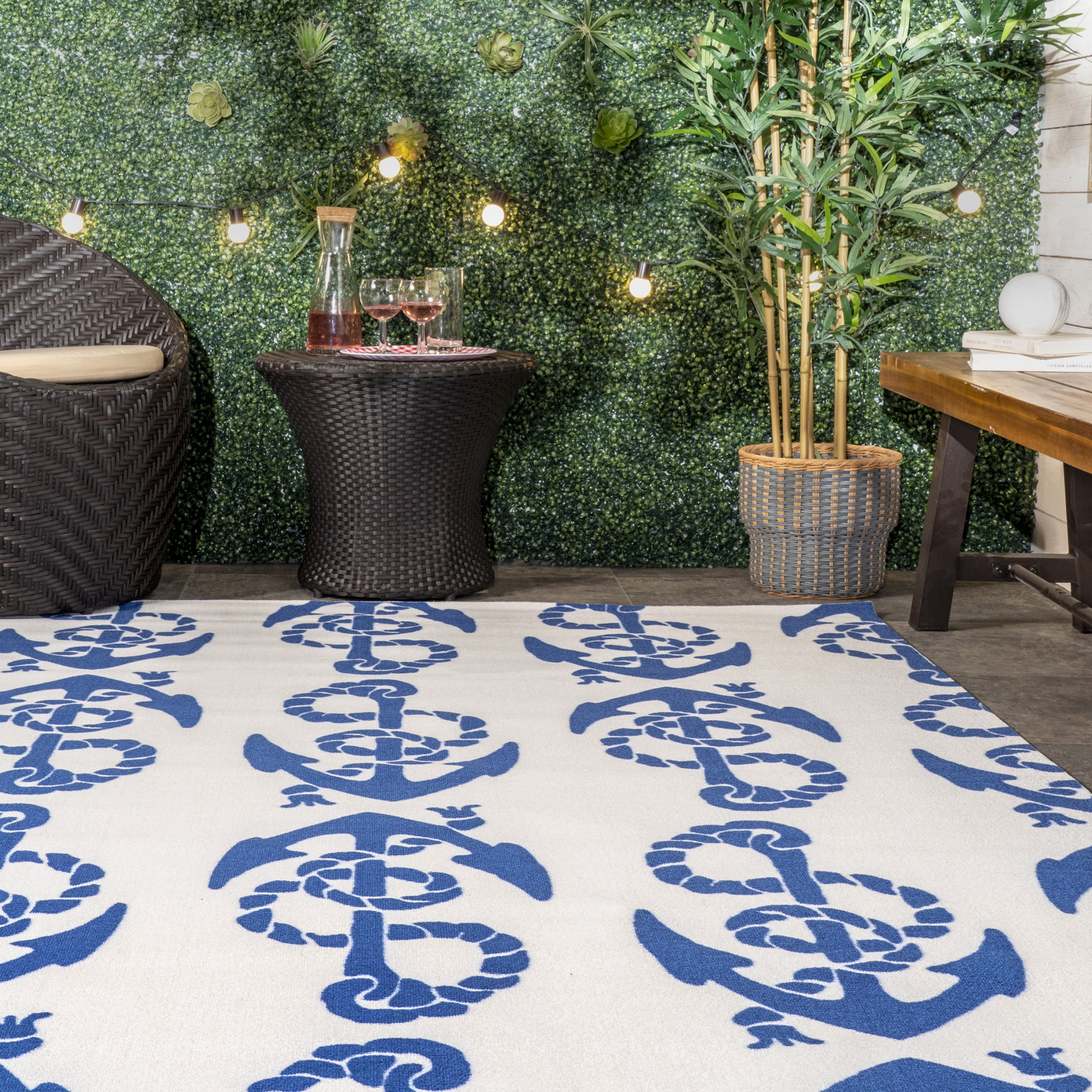 nuLOOM Rell Nautical Anchor Indoor/Outdoor Area Rug, 8′ x 10′, Blue