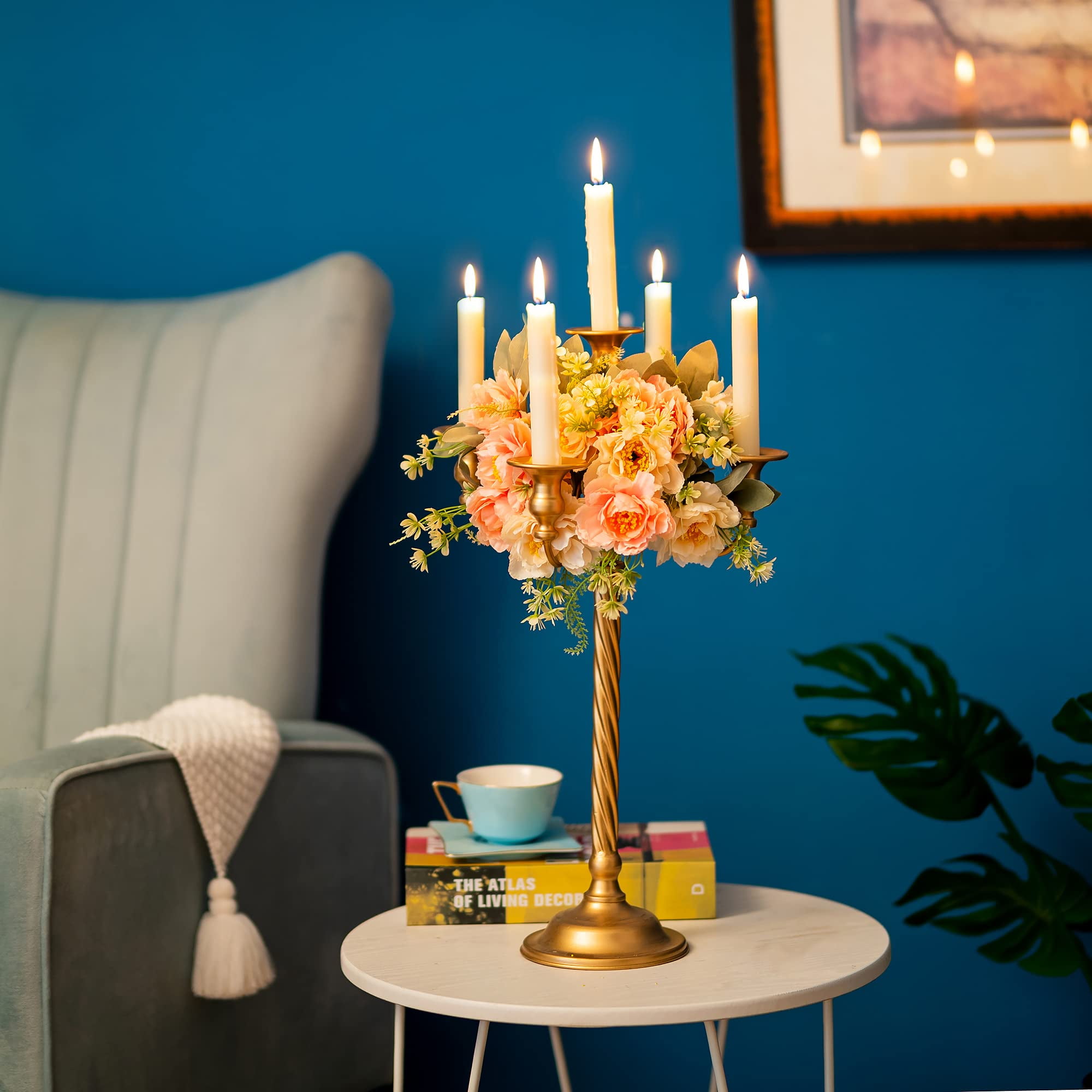 【High-Quality Material】Nuptio Candelabra for taper candle is made of high-quality metal material. After die casting, grinding, polishing, varnishing, and other processes. Durable rust-resistant. Classic threaded rod design, exquisite workmanship, elegant luxury. 【Exquisite Centerpieces】5 arms Gold Candelabra candle stands can hold candles, flowers, crystal ornaments, and other exquisite accessories. Vintage candle holders for table centerpieces suitable for Halloween,Thanksgiving,Fall Decor,Christmas,Wedding, Engagements, Party, Celebrations, Fiesta, and Candlelight dinners. 【Measures】Two sizes are available, Small candelabra height: 20.9″/53cm, base diameter: 5.5″/14cm. Large tall floor candelabra height: 28″/71cm, base diameter: 6.9″/17.5cm. Suitable for taper candles or flameless taper candles less than 0.8″/2.1cm. 【Decorate Your Life】Use Nuptio Gold candlestick holder to light up the night and enjoy a happy dinner, creating a regal and romantic atmosphere. Nuptio Candelabra Centerpiece provide a warm atmosphere for your home, fireplace, doorway, bedroom, living room, dining room, kitchen. 【Easy Installation】The disassembly design is convenient for transportation and safe delivery, saving your storage space. Each candelabra contains 6 accessories. (Does not include fake flowers and candles). Candelabra has any problems, feel free to contact us any time.