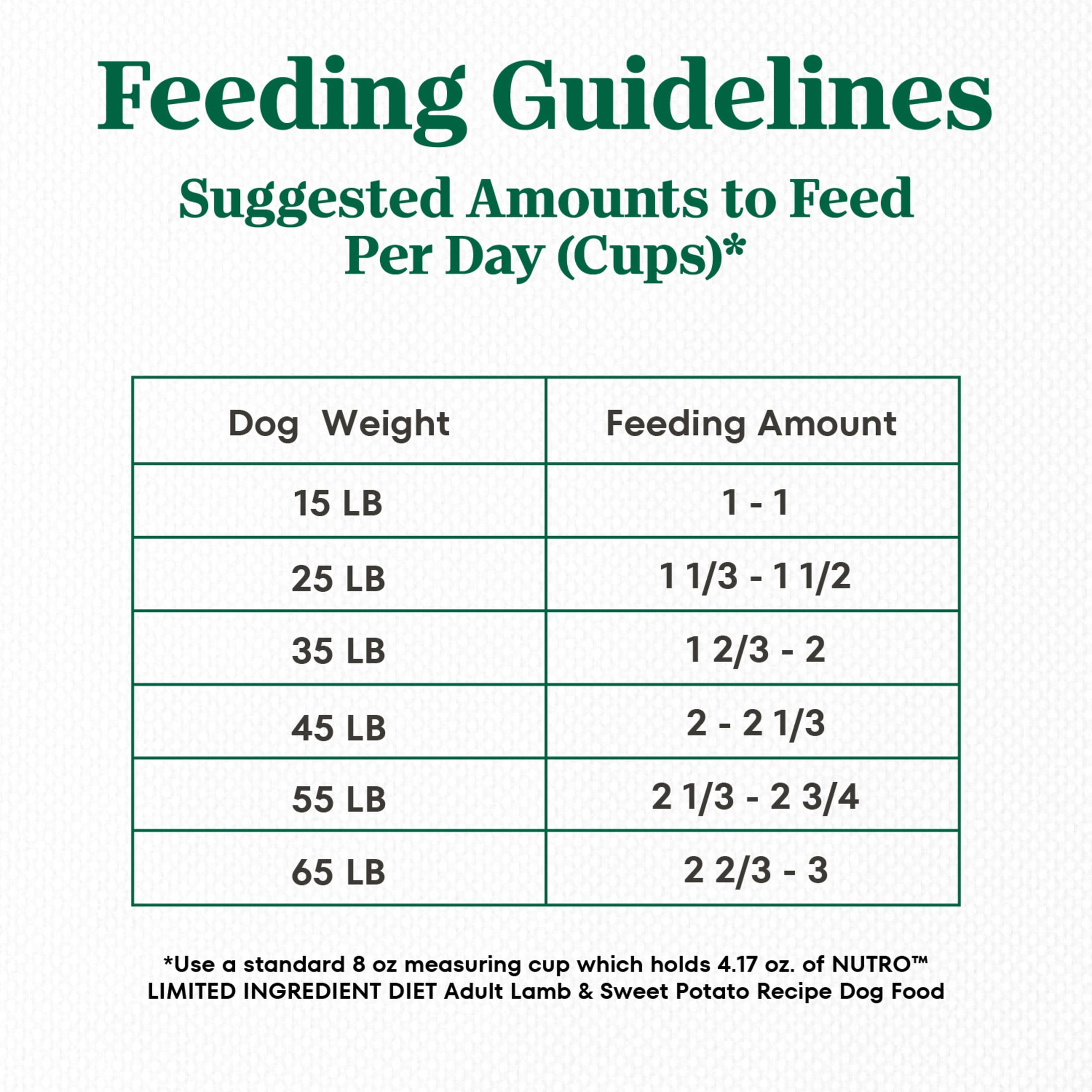 NUTRO Limited Ingredient Diet Adult Dry Dog Food Lamb and Sweet Potato is made using 10 key ingredients or less, plus natural flavors, vitamins minerals and other nutrients. These dry dog food recipes avoid ingredients that commonly cause food sensitivities in pets, like chicken, beef, corn, wheat, soy and dairy protein. Prepared with high-quality Australian and New Zealand lamb and real sweet potatoes, this grain-free dog food not only tastes great, but it also nourishes sensitive skin to give them a soft, shiny coat ?? guaranteed or your money back. NUTRO Limited Ingredient Diet Food for Dogs also follows the NUTRO FEED CLEAN philosophy, is always made with Non-GMO* Ingredients and is made with no artificial flavors, colors or preservatives. * Trace amounts of genetically modified material might be present due to potential cross contact during manufacturing.