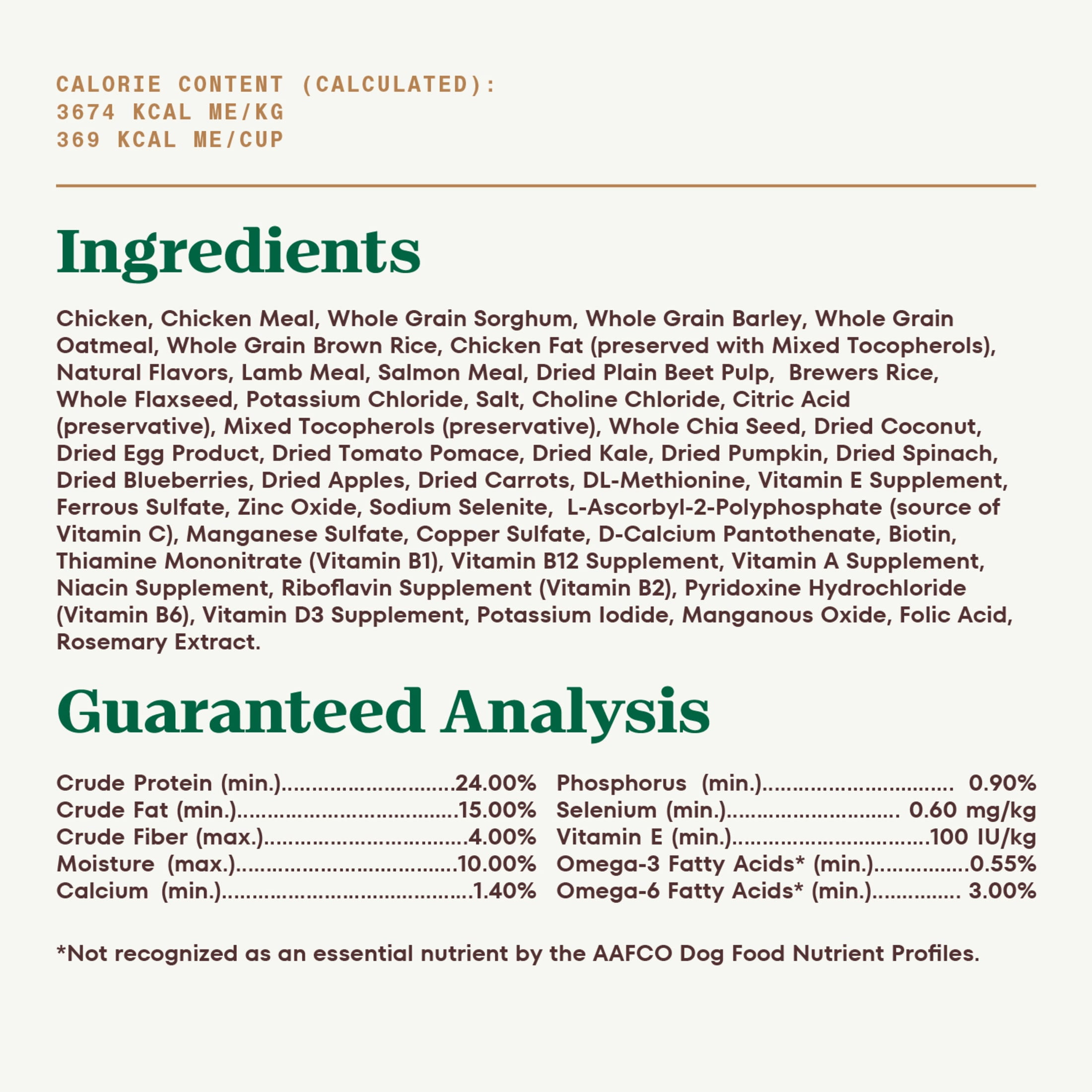 Made with high-quality ingredients and 14 superfoods to give abundant flavor and gourmet nutrition. Made with real chicken as the #1 ingredient and supports strong muscles and a lean body. Contains Omega 3 & 6 fatty acids for healthy skin and a radiant coat. Made with essential antioxidants to support healthy immunity. Crafted with natural fiber to help support a healthy digestive system.