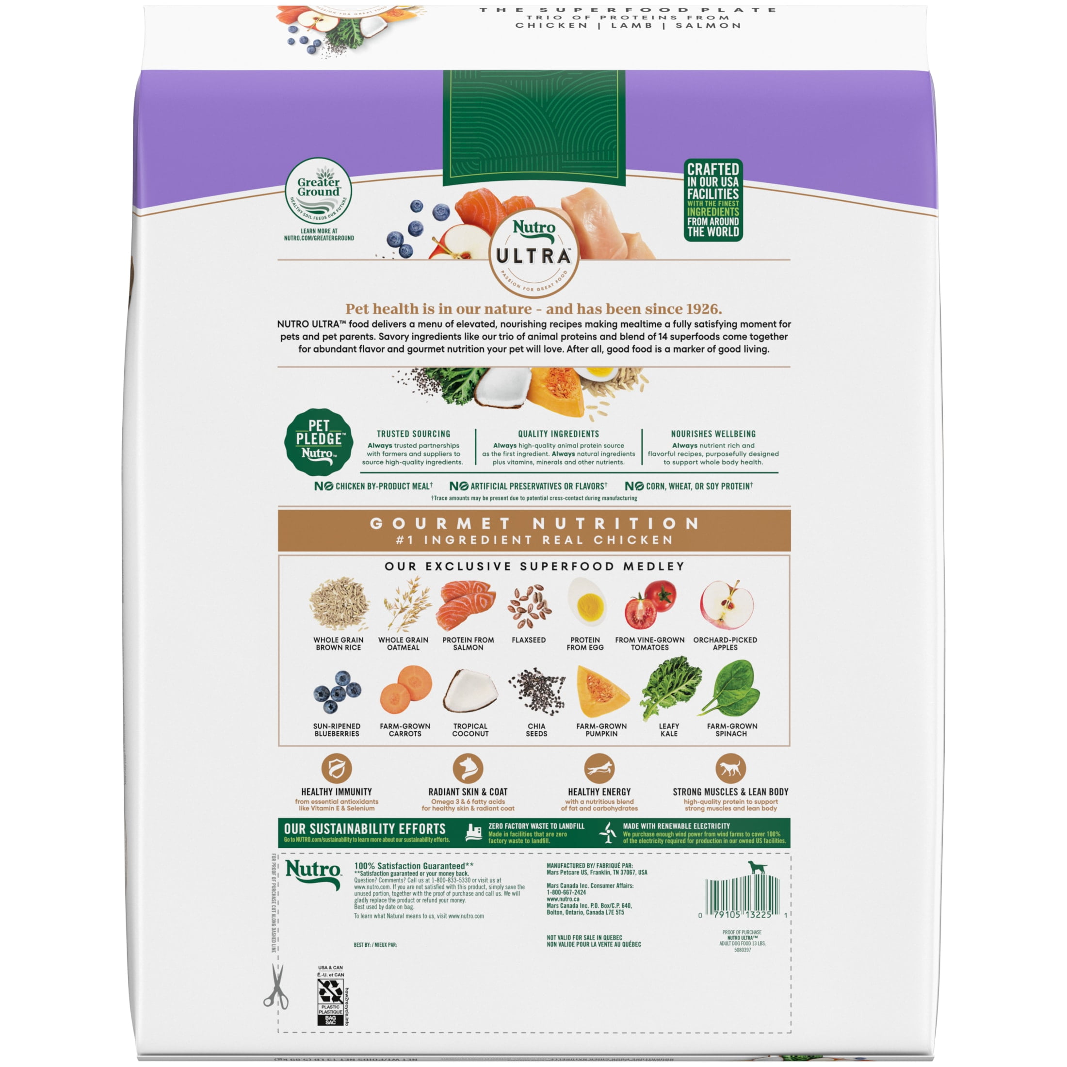 Nutro Ultra Adult Dry Dog Food with a Trio of Proteins from Chicken, Lamb and Salmon, 13 lb Bag