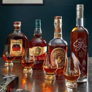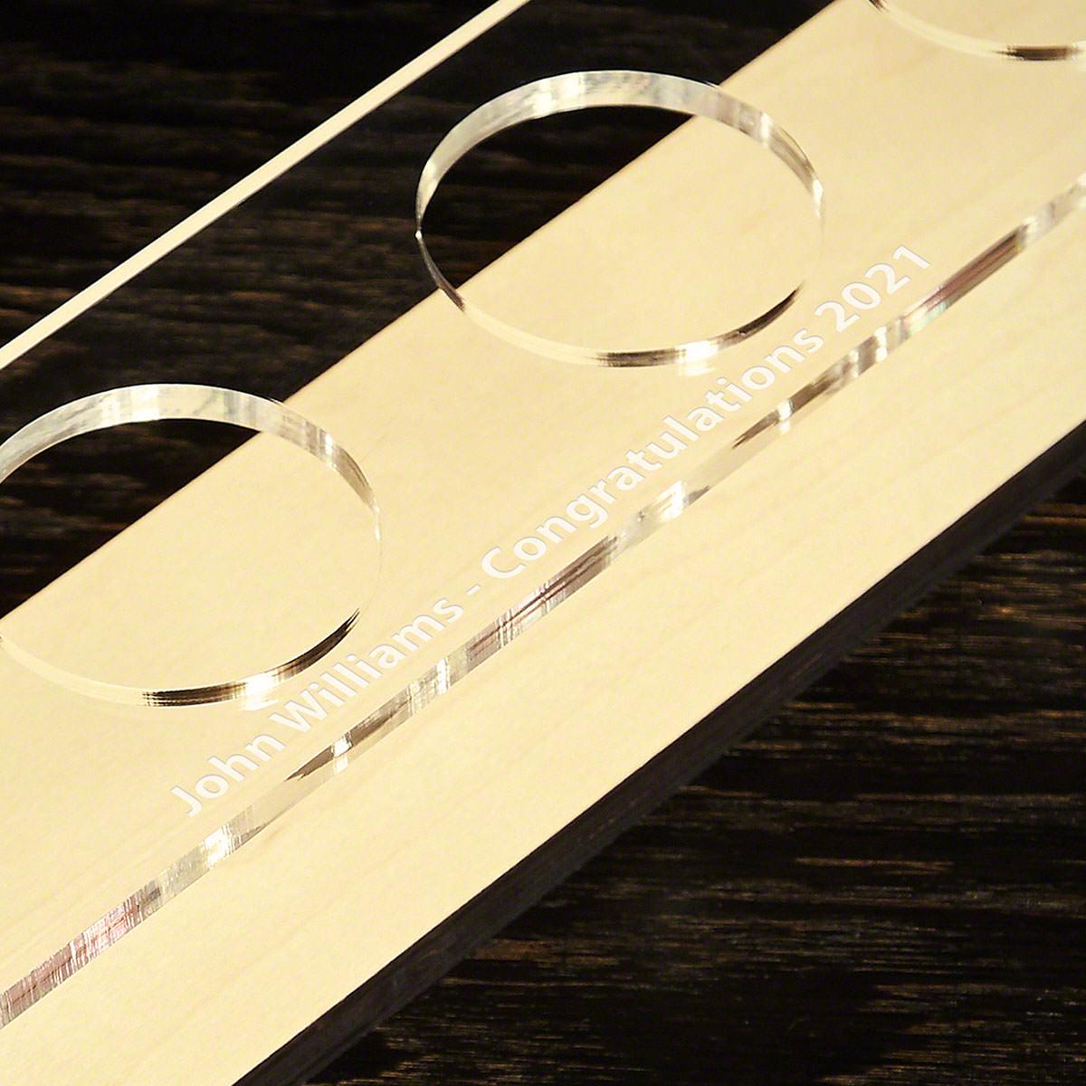 – Includes four personalized Glencairn glasses and an engraved acrylic and wood tray