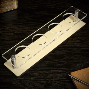 - Tray measures 14″ x 3″ x 2.75″, glasses measure 4.5″ x 3″ and hold 6 ounces