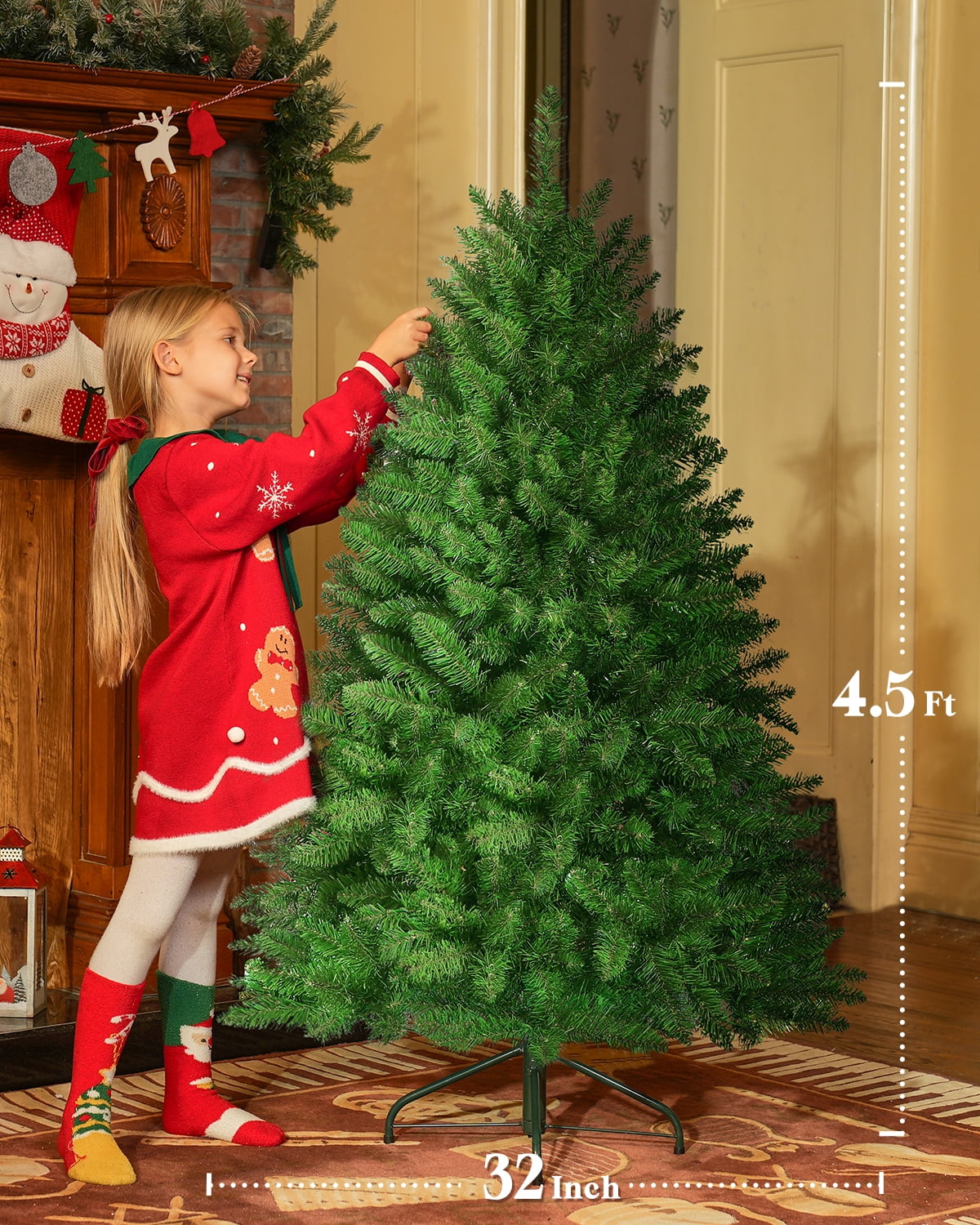 🎄BRIGHT, MULTI-COLORED, PRE-STRUNG LIGHT: OasisCraft color-changing Christmas tree is wonderful with 170 LED lights that have 8 lighting modes, colors or warm white, flashing or fading, or remaining solid, to add more color and fun to your Christmas. 🎄EASY SETTING UP, SPACE SAVING: This prelit artificial Christmas tree consists of 2 parts. You only need to connect them to assemble it successfully within several minutes. Then you can start to fluff and decorate the tree. And it is also convenient for store for next year’s use. 🎄FULL LUSH APPEARANCE: There is a total of 464 branch tips on this small 4.5ft Christmas tree, very full and cute. After assembling the 2 sections, please take some time to fluff it out and decorate, to make it show what it should be. 🎄SAFE, DURABLE MATERIAL: The Christmas pine tree with lights is made of high-quality PVC, safe and durable for long-time use, odorless and fireproof. 🎄FREE GLOVES & 1-YEAR WARRANTY: The package includes a pair of gloves to avoid discomfort on your hands when fluffing the trees. OasisCraft provides a 1-YEAR WARRANTY, if there are any problems with OasisCraft 4.5ft Xmas pine tree, please feel free to reach us, we will reply to you within 24 hours. . .