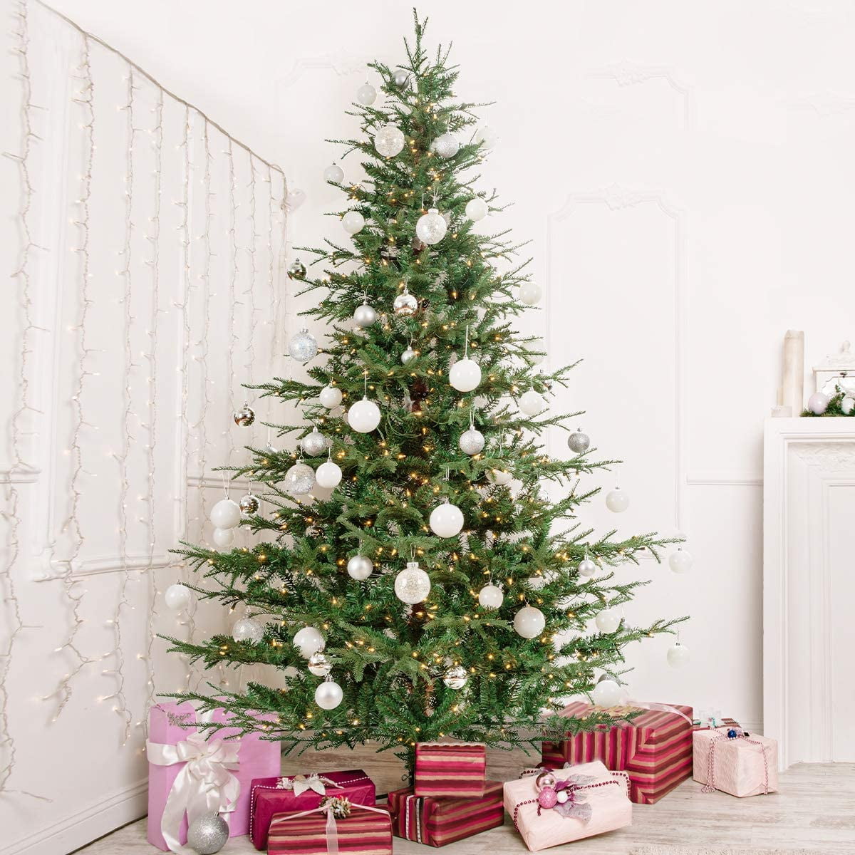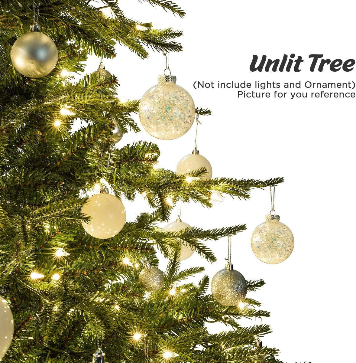 🎄Perfect Size: 6.5 feet tall (including stand), and 53 inches wide, Unlit 🎄FULL APPEARANCE: Features 70% PVC Classic Needles and 30% PE Needles for fullness, Composed of 793 branch tips. Fire resistant and non-allergenic 🎄The Christmas tree is Easy Assembly. 3 different sections inserted one by one. Your family will enjoy the installation. The real feel makes kids indulge it. 🎄High Quality: This Xmas tree can be used indoor or outdoor. It’s valued to accompany you with family and friends while you have your a great Christmas. 🎄1-Year Limited Warranty, Fast Shipped: 7 self-support inventory covers 48 states on America. Fast delivery, Shipping soon. Provided 1-Year Limited Warranty, make you Christmas without any scruple. . .