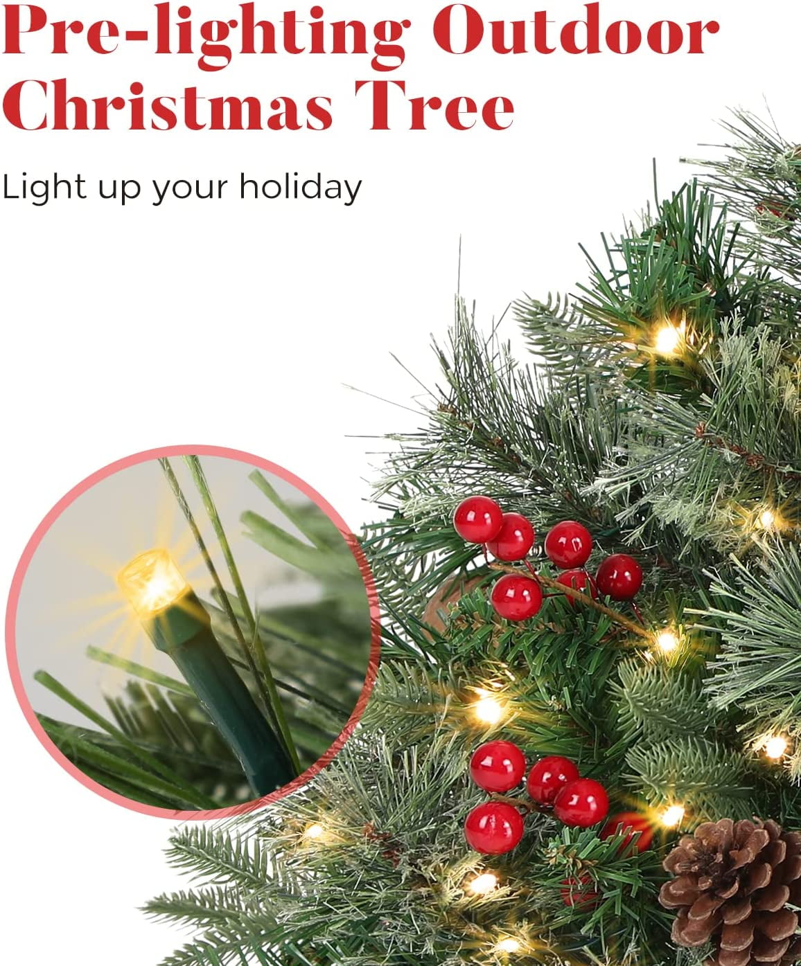 Home / Seasonal Décor / OasisCraft Outdoor Christmas Tree Frosted Urn Filler, Pre-lit Artificial Xmas Tree with Cones & Red Berries, 18 Inch Small Christmas Tree with 50 Warm Lights
