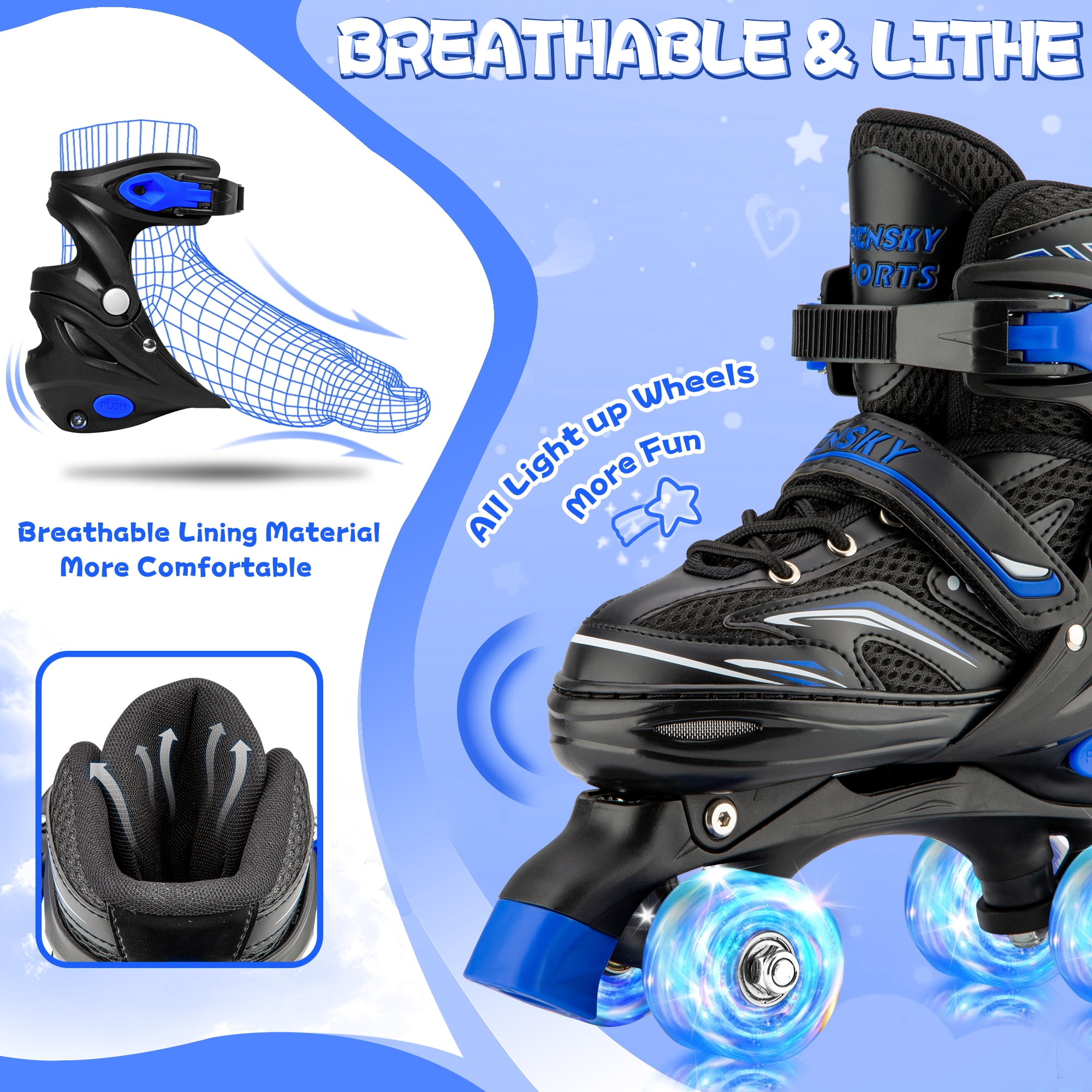 OBENSKY Roller Skates, 4 Size Adjustable for Girls & Boys w/ Light up Wheels-Blue/Pink