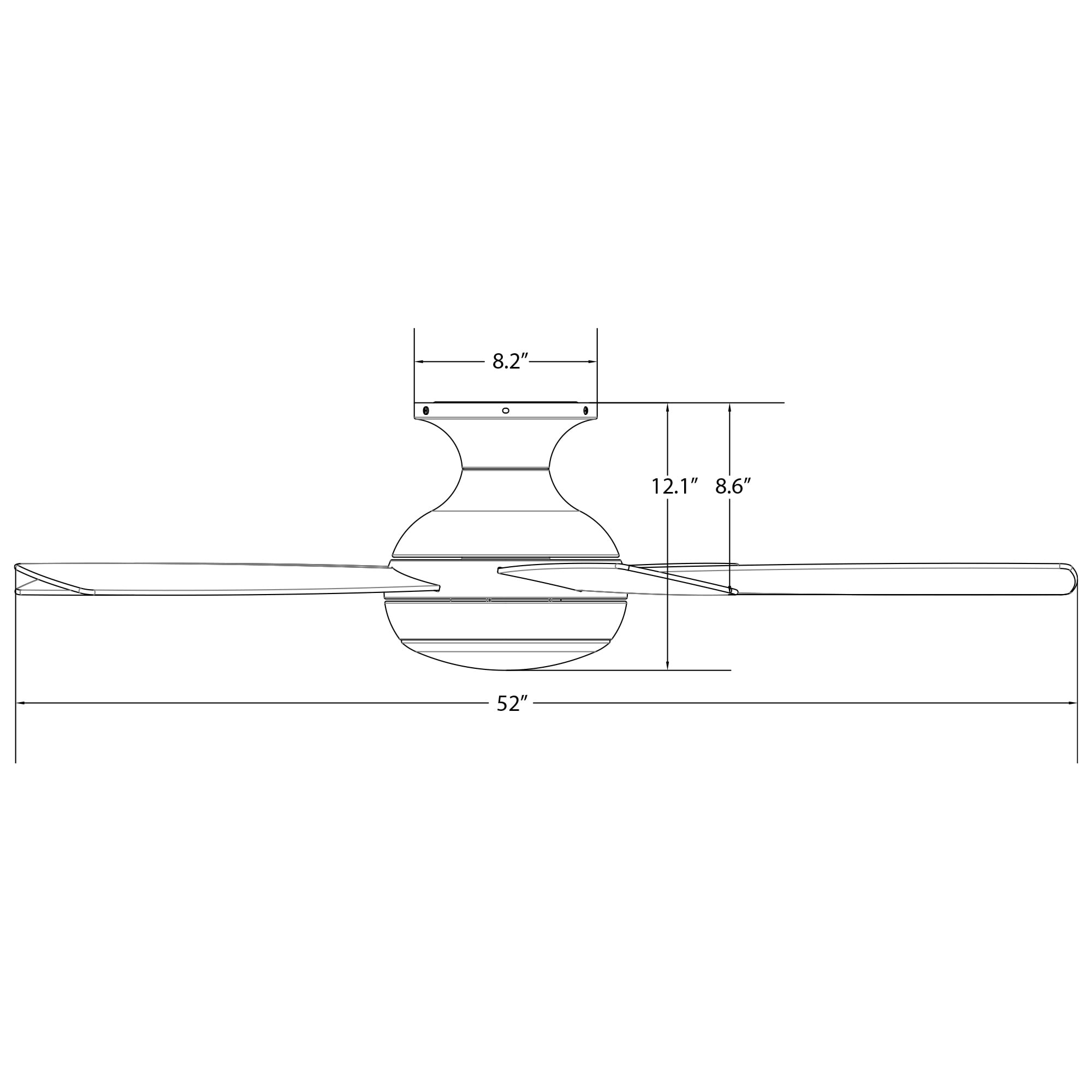 Features: WAC Lighting ceiling fans can be enabled with an iOS or Android app purchase to pair with the smart home tech you know and love Battery operated Bluetooth remote control with wall cradle included Made with incredibly efficient and completely silent DC motors up to 70% more efficient than traditional fans and tested to ensure each fan will never wobble, rattle or click Constructed from Steel Fan is controlled by a Remote Control (included) Abled to be mounted on low ceilings Includes 1 x down rod Integrated dimmable LED lighting Uses an energy efficient reversible 25-watt DC motor Ratings: ETL, cETL, UL, cUL, CSA Canada and Damp locations Energy Star certified California Title 24 certified Covered under a manufacturer warranty of 5 years (LED), lifetime (motor), and 1 year for all other parts Dimensions: Blade Span: 52in Height: 12.1in Housing Width: 9.4in Product Weight: 17lbs Canopy Width: 8.2in Wire Length: 32in Blade Specifications: Number of Blades: 5 Blades Included: Yes Reversible Blades: No Blade Pitch: 12 Degrees Blade Material: Plywood Motor Specifications: Speeds: 6 CFM (H/M/L): 4782/2999/1160 (cubic feet per minute) RPM (H/M/L): 165/103/40 Reversible Motor: Yes Motor Wattage: Plywood watts Light Kit Specifications: Lumens: 2100 LED Color Temperature: 3000K Wattage: 23.5 watts Average Hours: 50000 Dimmable: Yes