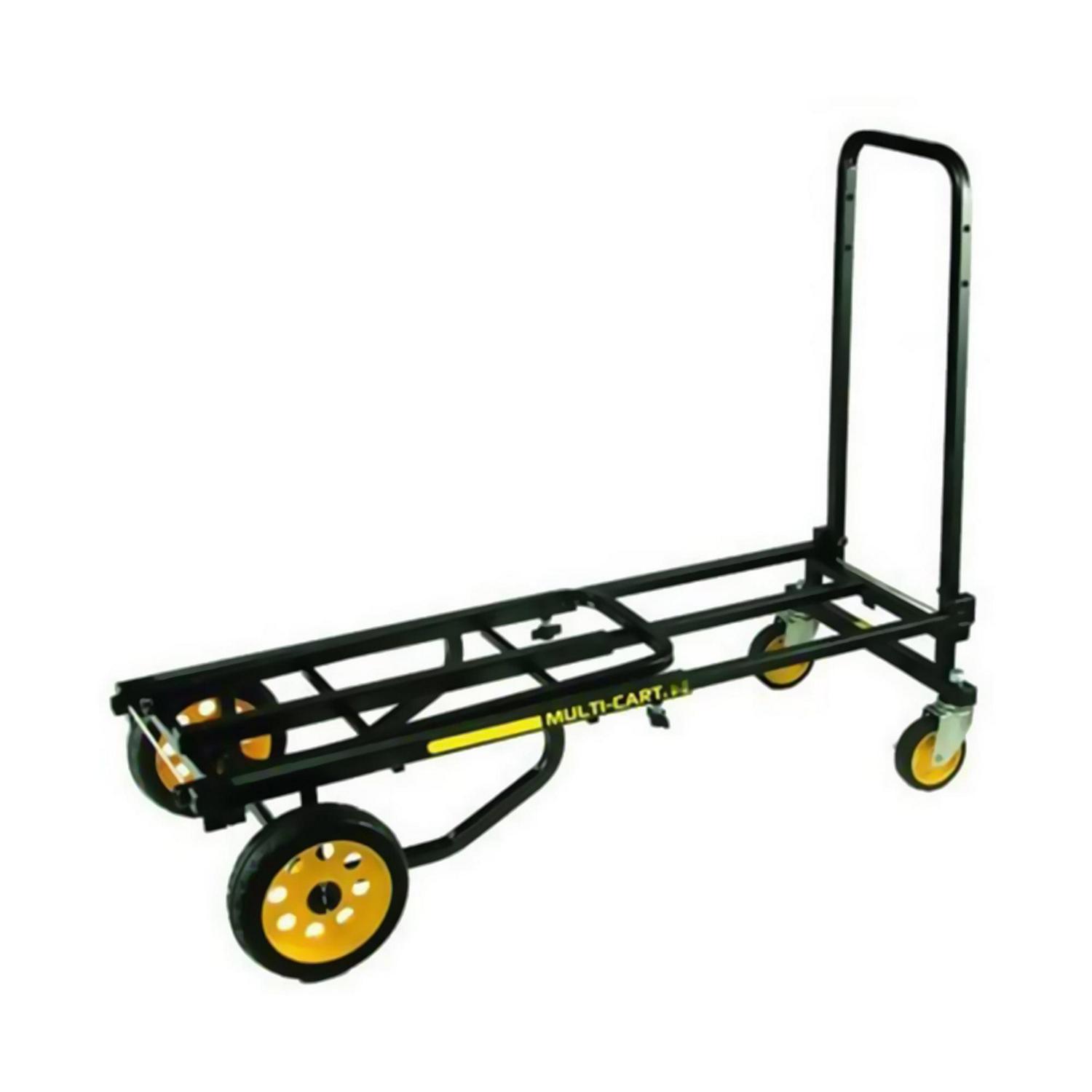 Pack up all of your DJ equipment in between gigs and parties with the Odyssey RockNRoller Mid Multi-Cart. This 8-in-1 cart can be adjusted into 8 different forms, accommodating a large variety of load sizes. The cart extends from 34 to 52 inches long, so you can take everything you need with you in fewer trips. Rear wheels are foam-filled so they will never go flat, making it easy for you to wheel the cart from place to place. The front R-Trac casters are super wide with excellent traction, so you can enjoy a smooth ride over a variety of terrain. The durable cart protects your equipment while you transport everything in between gigs and parties. Constructed of 16-gauge powder-coated steel, this multi-cart is built to last. While the RockNRoller cart can carry a large amount of equipment at one time, the changeable multi-cart also folds down into a small size for easy storage or transport in the trunk of a vehicle. Enjoy smooth transportation for practically any combination of DJ equipment with the Odyssey RockNRoller Mid Multi-Cart.